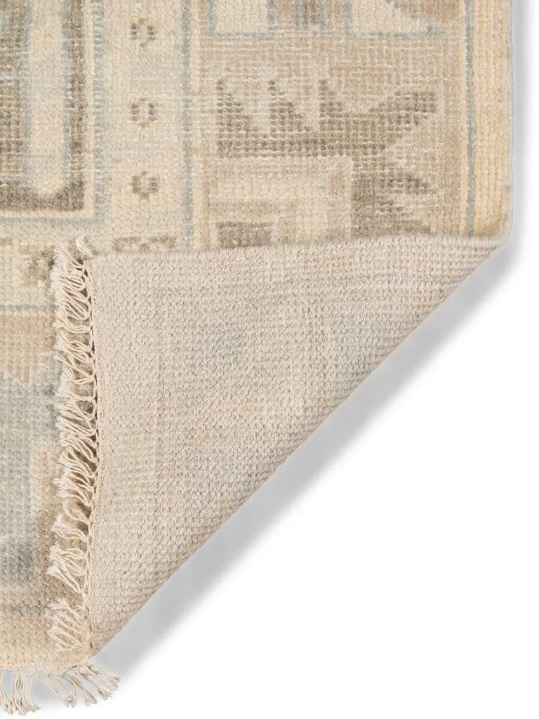 At home in nearly any decor, this rug is hand-knotted of wool with a stunning pattern inspired by traditional Oushak motifs. The textural fringe and washed color palette give it the appeal of a rare vintage find. We recommend a rug pad to extend the life of your rug and keep it securely in place.