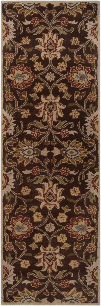 Collection: Yauco Colors: Olive, Tan, Rust, Dark Red, Dark Brown, Beige Construction: Hand Tufted Material: 100% Wool Pile: Medium Pile Pile Height: 0.39" Styles: Traditional Backing: Canvas Made In: India Thickness: 0.87" Price Range: $$$$$ (Affordable)