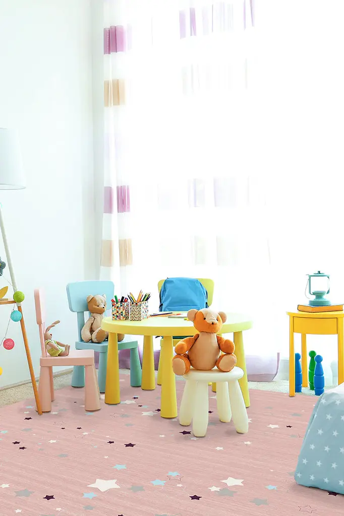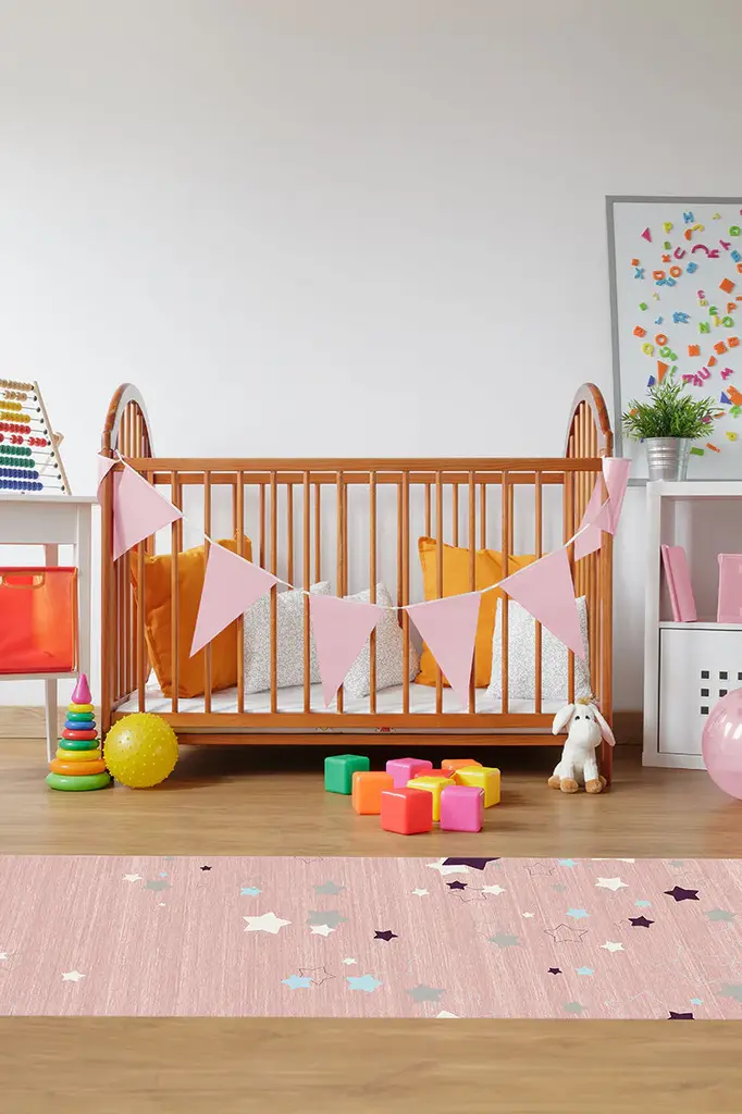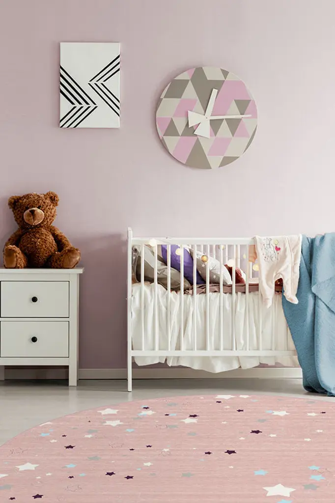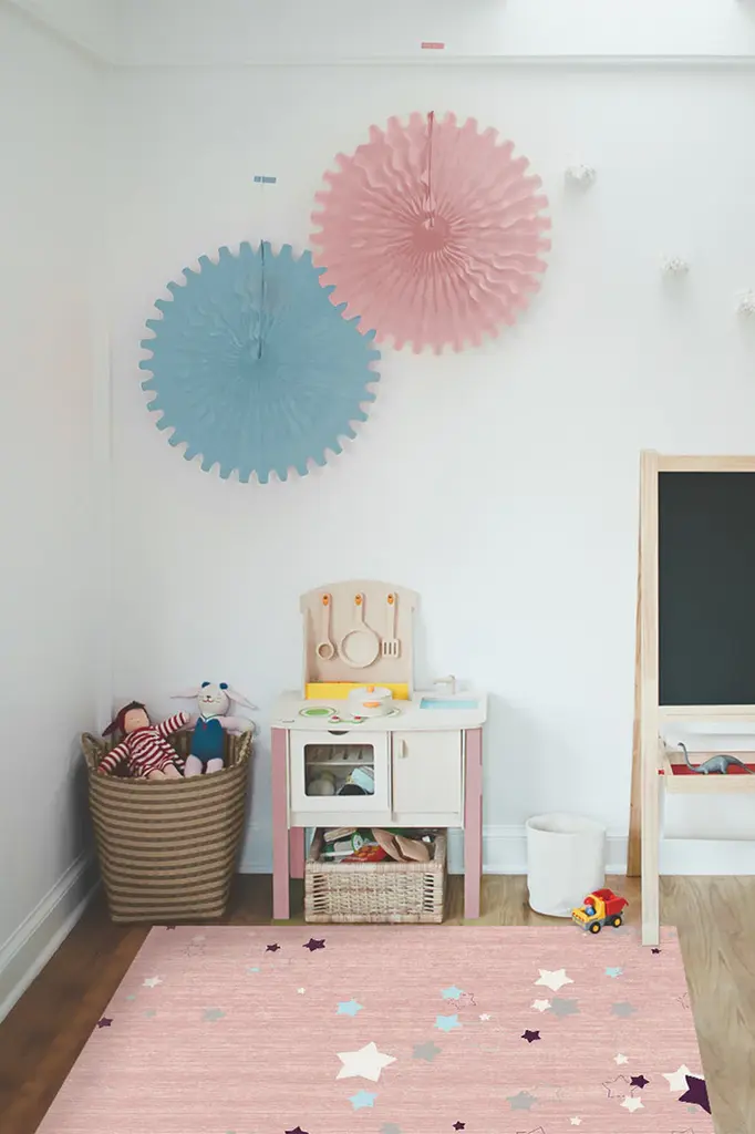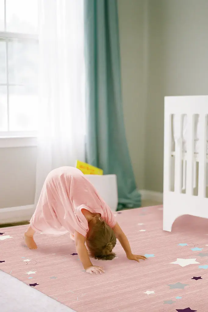 Your child's room will enjoy out-of-this-world charm with our Constellation Pink rug. The fun interplay between its celestial motif and the intermingling of dusty rose, ballerina pink, lavender, baby blue, concord grape, silver and pearl will anchor and add imaginative sparkle to a bed or playroom.