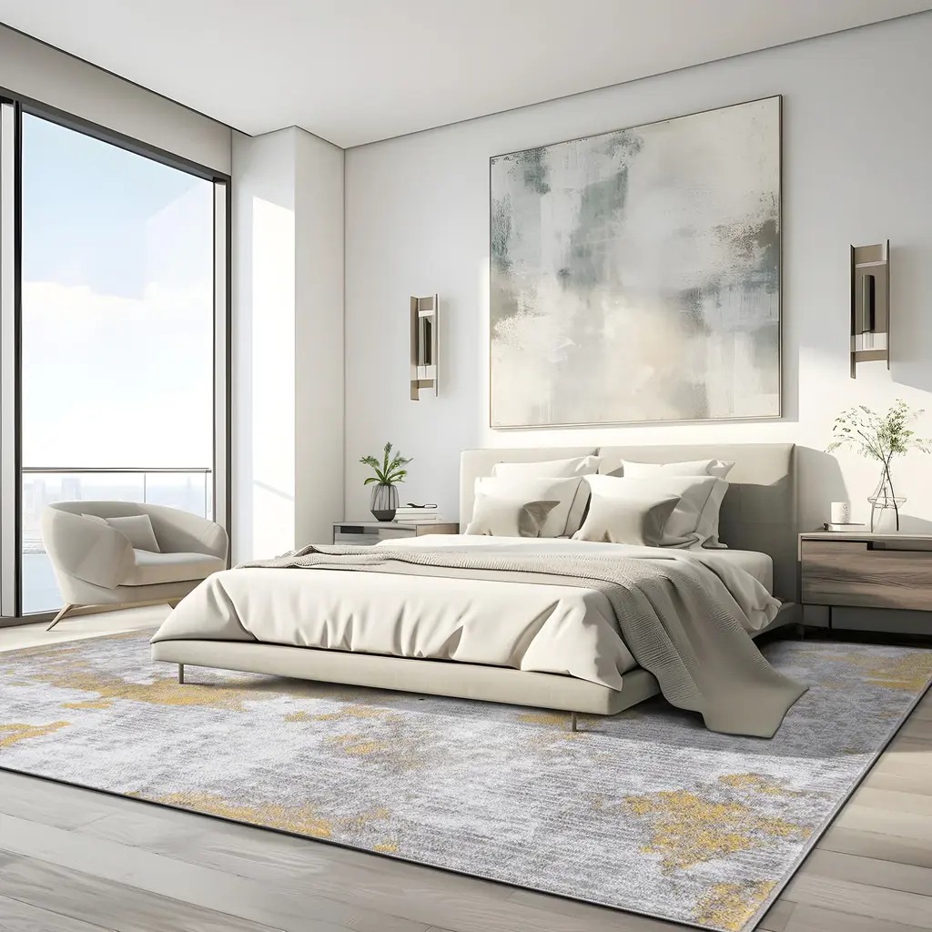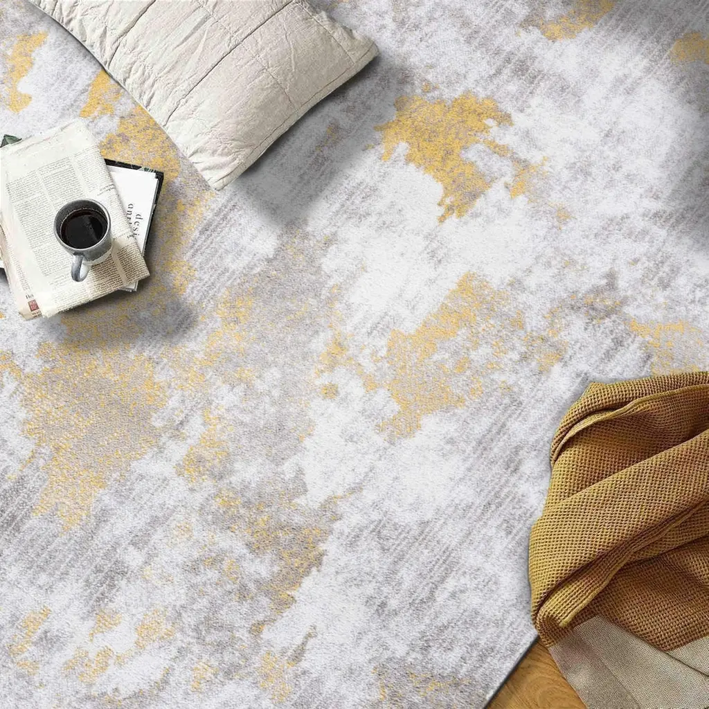 Details: Experience the perfect fusion of comfort, durability, and contemporary style with our modern abstract rug. This rug features a plush 0.35-inch pile height, providing a luxurious feel while remaining easy to maintain through simple spot cleaning and regular vacuuming. Crafted with precision from premium polypropylene fabric and reinforced by a sturdy cotton backing, this rug exemplifies superior quality and timeless elegance, effortlessly infusing a touch of modern sophistication into any space. Elevate your comfort and style with this exquisite rug. Features: