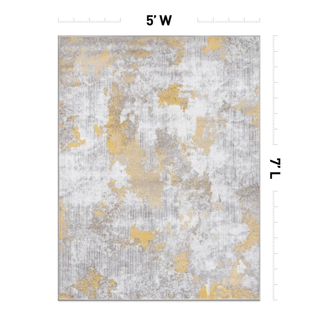 Contemporary Abstract Elegance Area Rug - 5' X 7' - Yellow - Rectangle