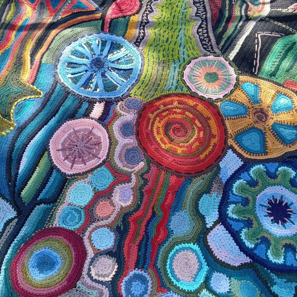 Category: Rugs, Carpets, DecorationDimensions: 1.95m x 1.65mThickness: 0.015mWeight: 6.5kgMaterial: recycled used clothing, 100% cotton The technique combines crochet, embroidery, and quiltingMADE TO ORDERGet in touch for trade pricing, bespoke options, project management and consolidated deliveries.Email us on svitanok dot com