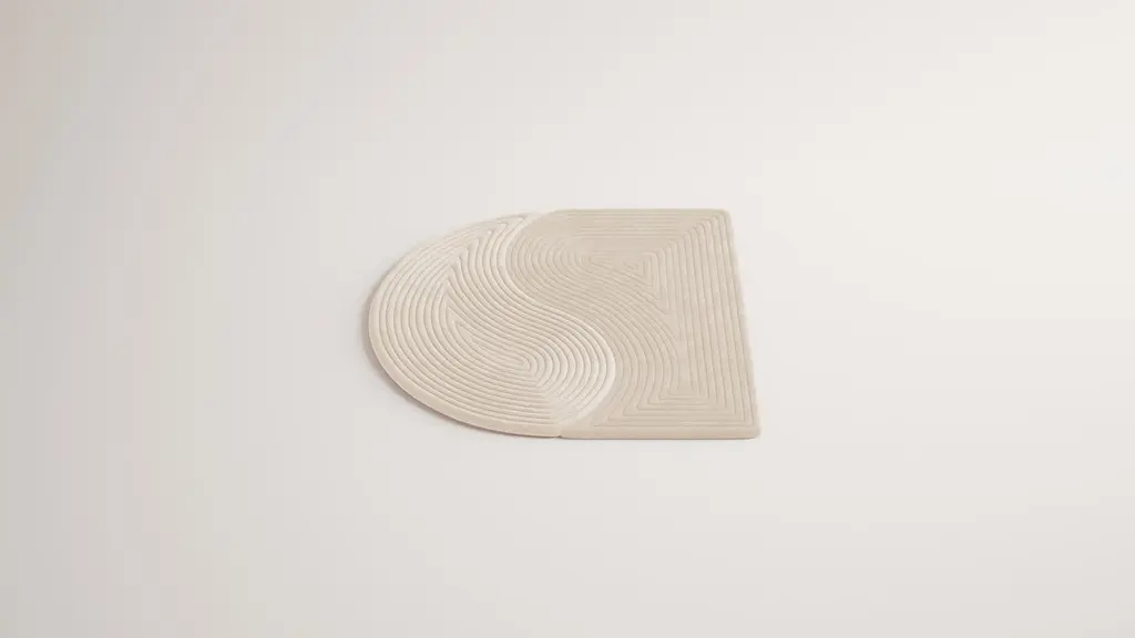 Niwa is a collection of minimal and organic modular rugs. Each module can be combined with others in endless ways to create customizable configurations. This collection is a representation of the sand element within Zen Gardens. The rugs provide fluidity to the space's atmosphere - via the repetition of the internal pattern, they achieve a feeling of movement and fluidity. At the same time, through their external modular shape, they aport change and dynamism to the space.