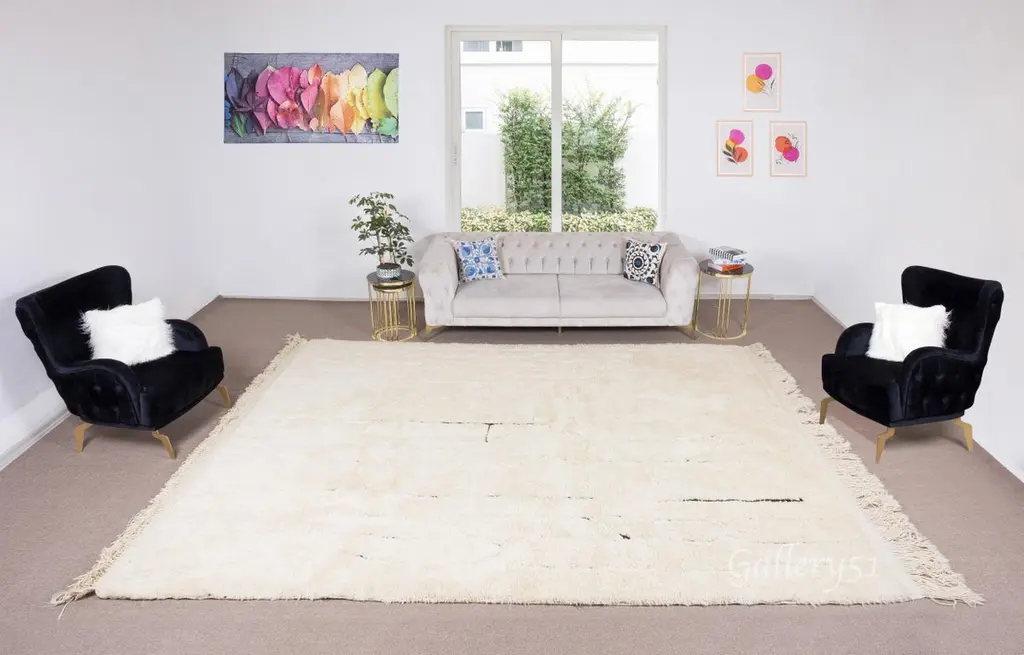 100% Natural Hand-Spun Wool of finest quality.Available as seen or can be CUSTOM PRODUCED in any Design, Size, Color Combination and Pile Thickness requested. These beautiful hand-knotted rugs are produced from scratch in our atelier located in Central Anatolia, famous for being one of the world's oldest handmade rug making centers.All our weavers are adult female artisans who inherited carpet weaving tradition from their mothers and grandmothers and are highly skillful in the subject.The designs are based on or inspired from vintage Moroccan Berber, Beni Ouarain and Azilal carpets or Turkish "Tulu" Rugs.It takes 3 weavers approximately 5 weeks to produce one of these rugs from scratch depending on the size.