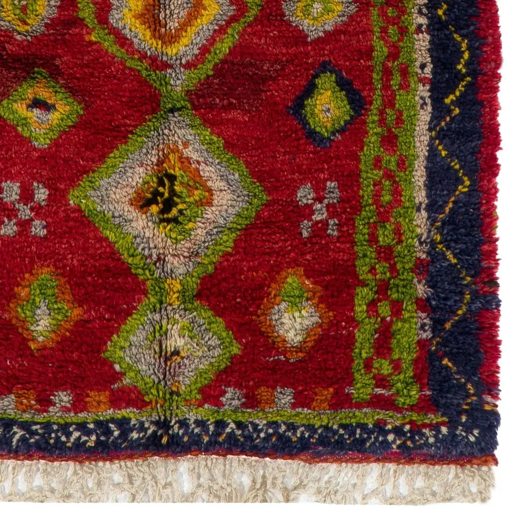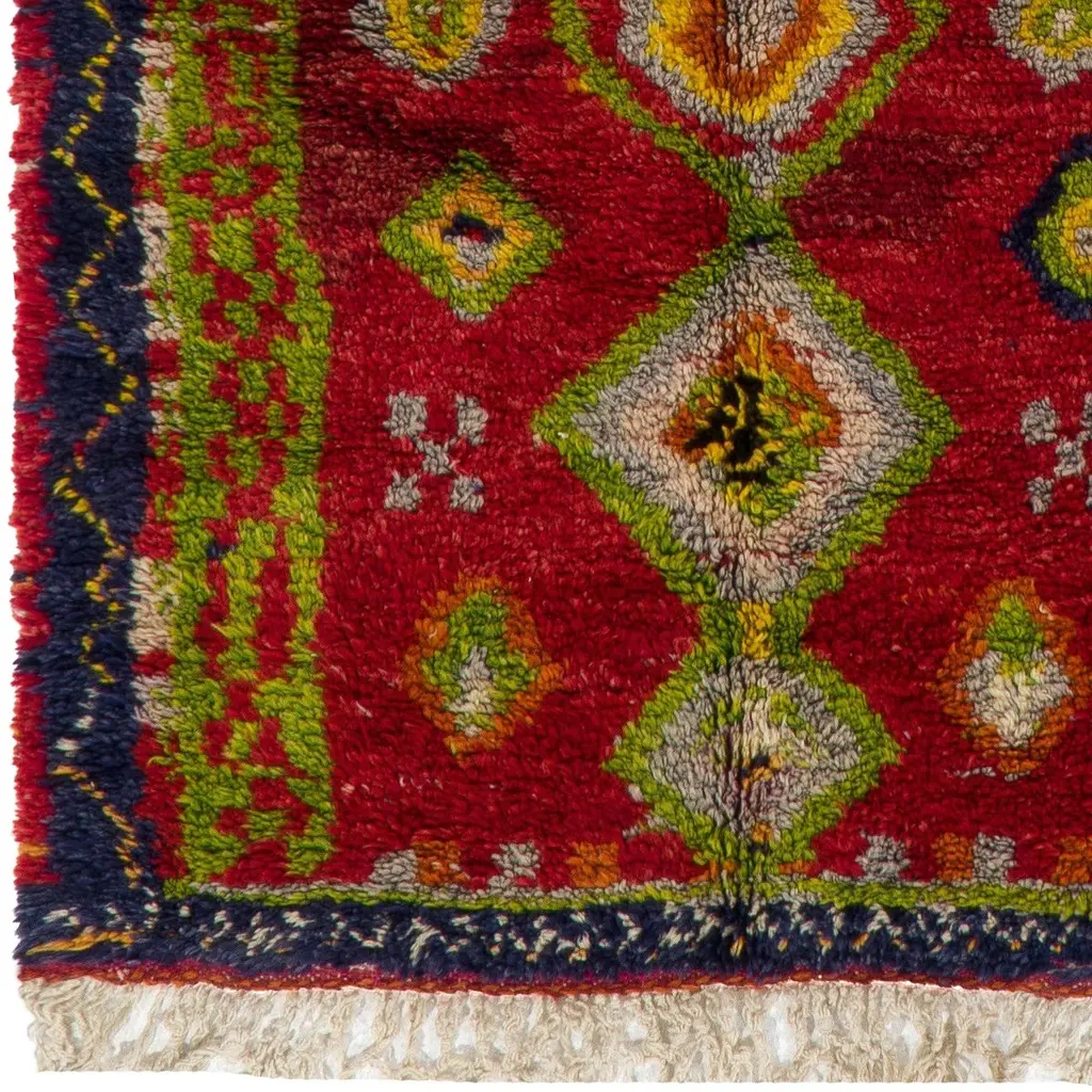 Contemporary Hand-Knotted Tulu Rug With Moroccan Design And Red Field. 100% Wool