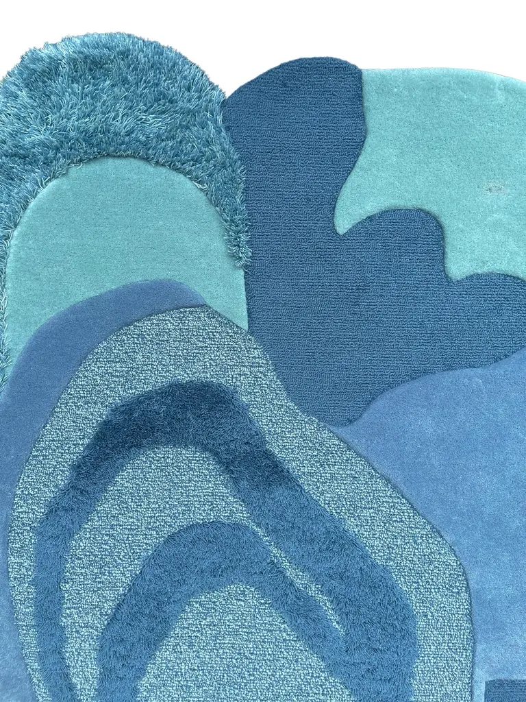 Earth Day Bleu! is a contemporary irregular shape hand-tufted wool rug with mixed kind of blue colours A rug inspired by currents of the ocean and Cumulonimbus; sources of water - the very essence of life. Replicate sensations of flowing water and the tranquility that comes with it in your room.This rug will fulfil that dream to your imagination - and your space.Original Designed by RAG HomeHand-tufted with mixed Methods and Colours. Only produced in limited quantity. It can be customised in size and composition upon request.RAG under this brand, lies a strong picturesque construct with solid contemporary HOME ornaments. a delicate kind of mix materials arranged in artistic motifs the vision pursued by establishment of high-end line with the highest quality.RAG will constantly focusing and innovating, monitoring craftsmanship behind the product.RAG provide a wider selection to your HOME ornaments.the design will be consisted of limited edition with higher build quality to deliver premium value in unique features.Proudly Made In Indonesia
