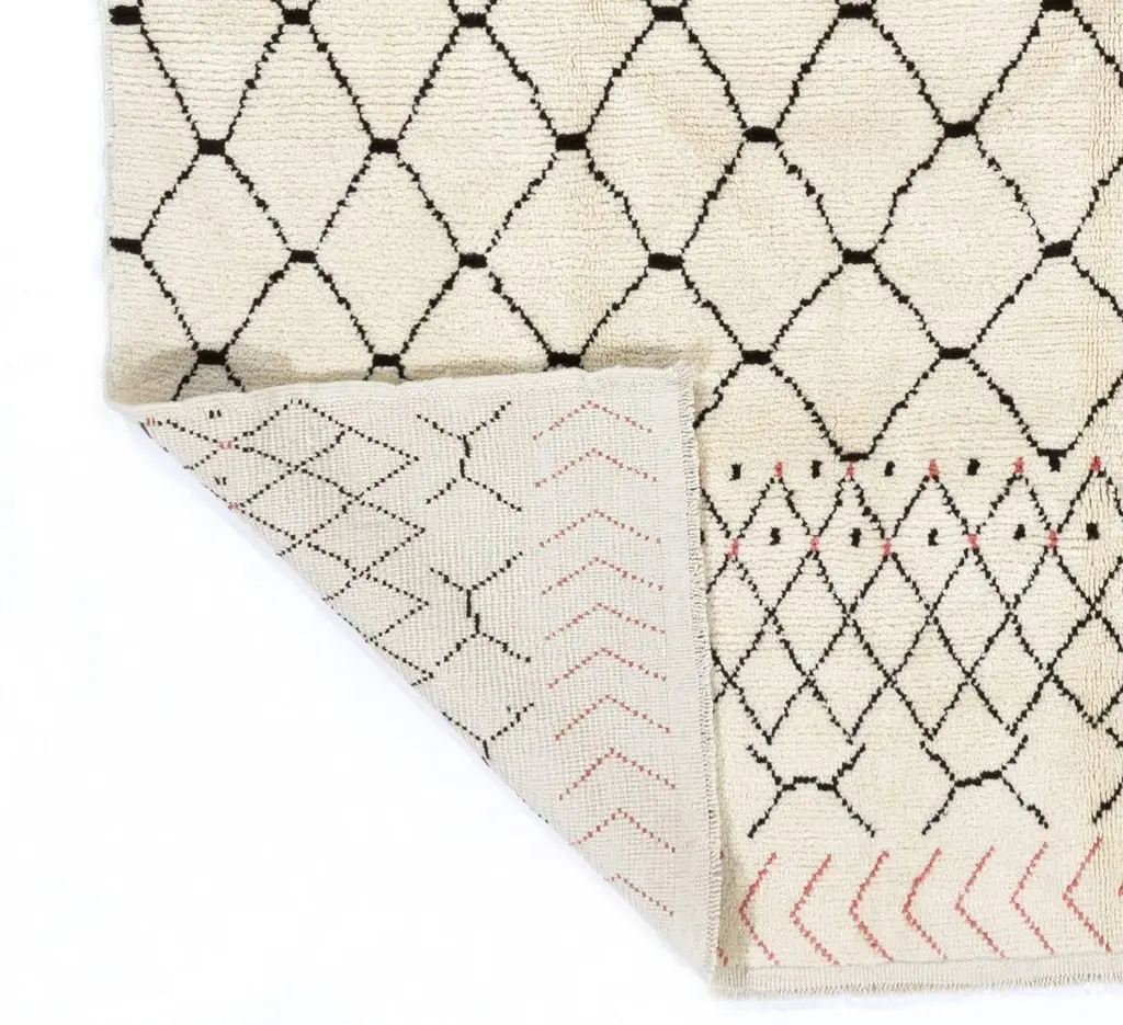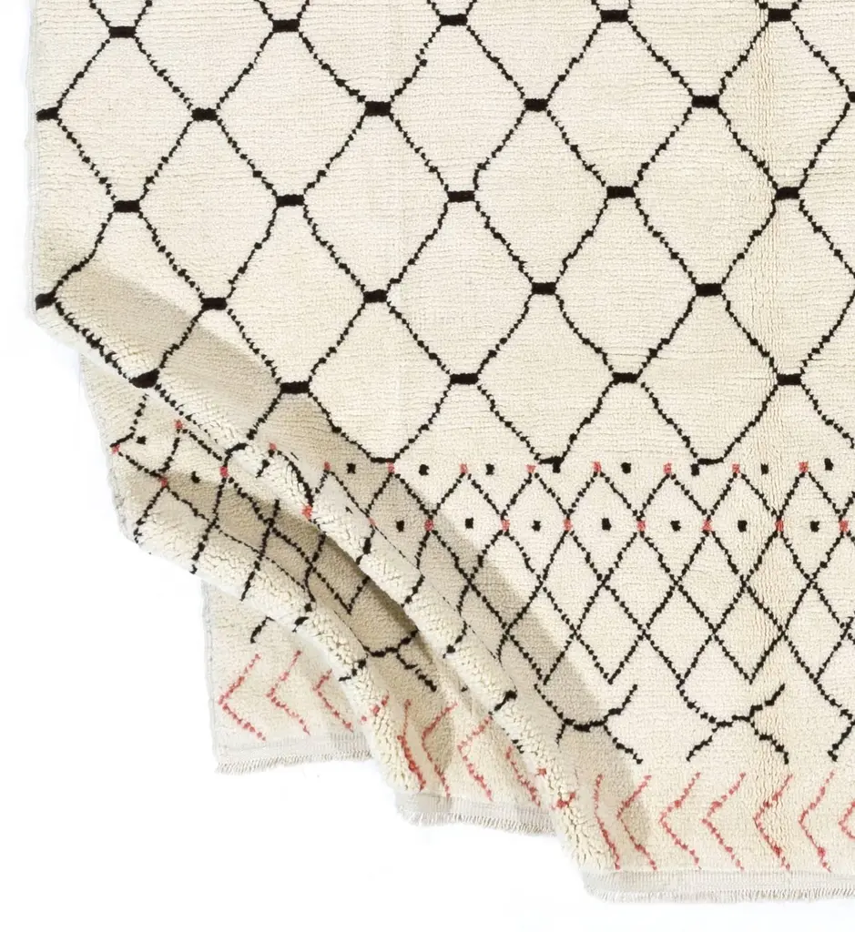 100% Natural Hand-Spun Wool of finest quality.These hand-knotted rugs are produced from scratch in our atelier located in Central Anatolia, famous for being one of the world's oldest handmade rug making centers.All our weavers are adult female artisans who inherited carpet weaving tradition from their mothers and grandmothers and are highly skillful in the subject.The designs are based on or inspired from vintage Moroccan Berber, Beni Ouarain and Azilal carpets or Turkish "Tulu" Rugs.It is available in 7 x 10 Ft (213 x 305 cm) and 10 x 13.8 Ft (307 x 418 cm) for immediate dispatch.