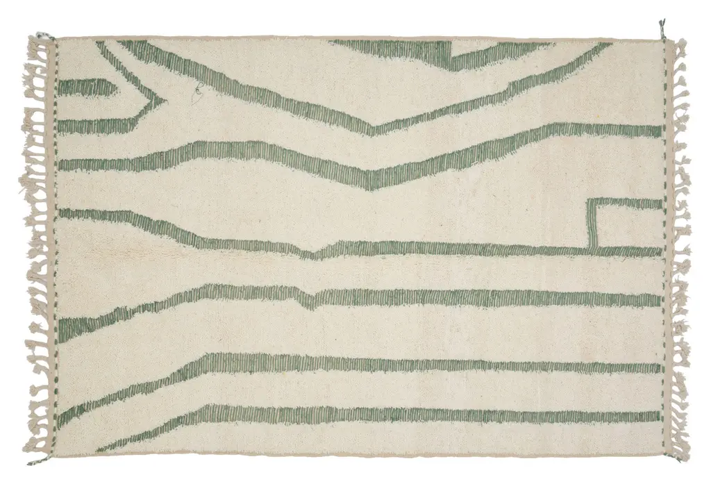 Contemporary Moroccan Rug 8’x10’ Green Wool Ivory Line Accents, Custom-Made