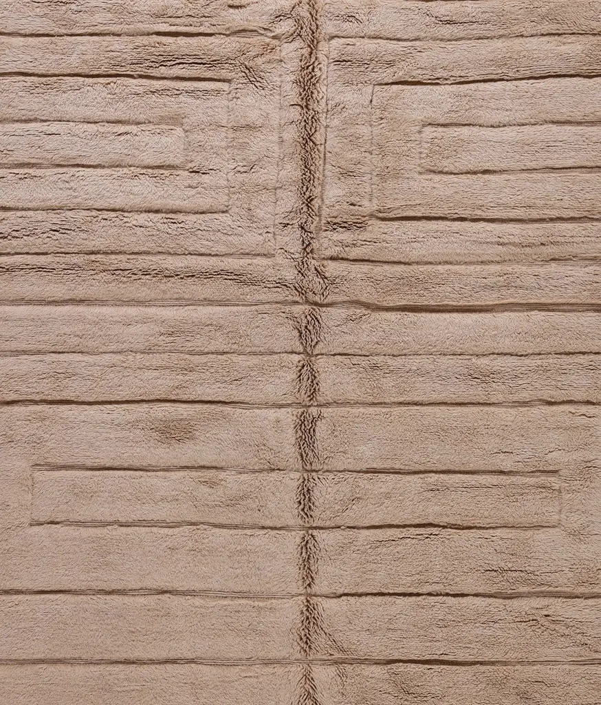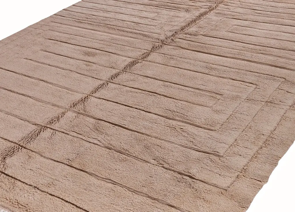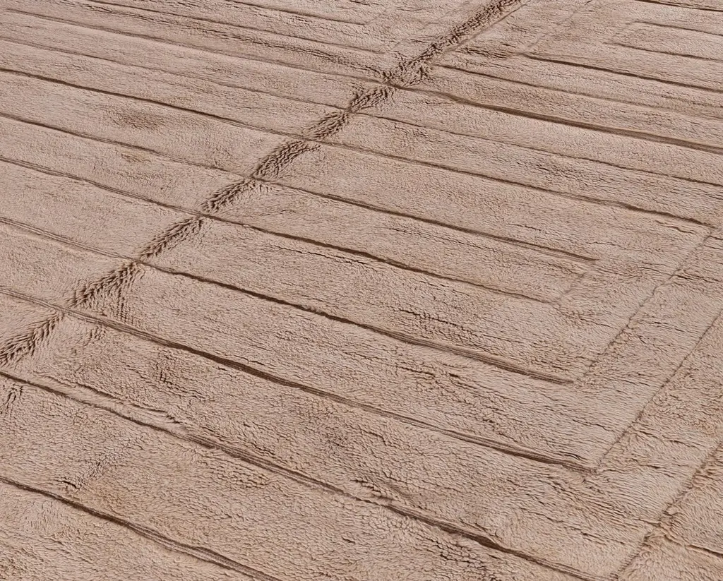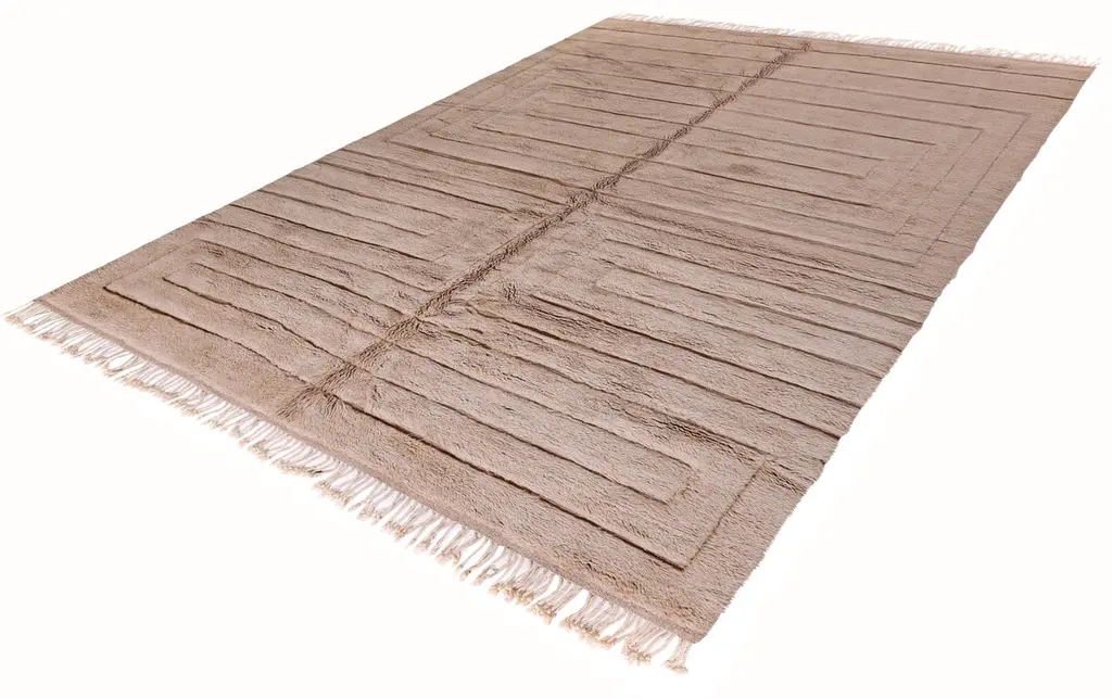 Elevate your space with this contemporary Moroccan rug, masterfully crafted in hand-knotted beige wool. The monochrome color palette is enriched by a sculptural linear relief pattern that adds quiet drama through subtle texture and geometric flow.Inspired by architectural precision and minimalist design principles, this plush rug merges traditional Berber craftsmanship with modern elegance. Its thick, luxurious pile and balanced linear motif make it a stunning centerpiece in both neutral and design-forward interiors.Perfect for living rooms, bedrooms, or curated gallery spaces, this one-of-a-kind rug offers a refined foundation with warmth, depth, and timeless artistry.Size: 9' x 12'