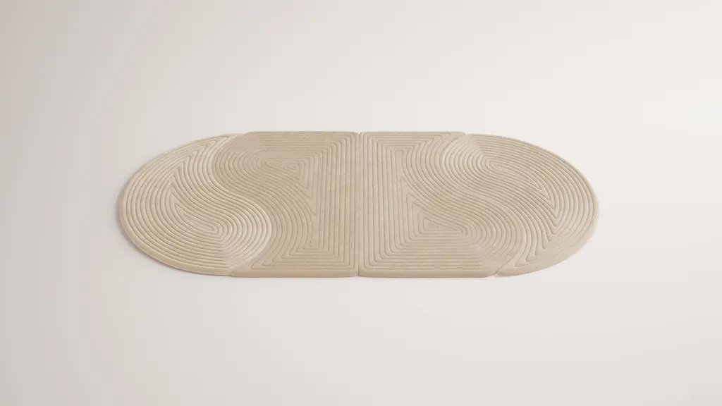 Niwa is a collection of minimal and organic modular rugs. Each module can be combined with others in endless ways to create customizable configurations. This collection is a representation of the sand element within Zen Gardens. The rugs provide fluidity to the space's atmosphere - via the repetition of the internal pattern, they achieve a feeling of movement and fluidity. At the same time, through their external modular shape, they aport change and dynamism to the space.