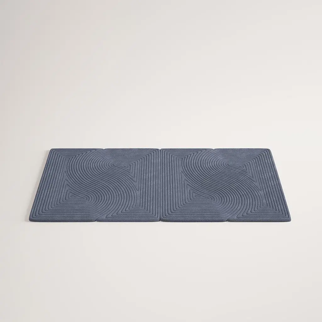Niwa is a collection of minimal and organic modular rugs. Each module can be combined with others in endless ways to create customizable configurations. This collection is a representation of the sand element within Zen Gardens. The rugs provide fluidity to the space's atmosphere - via the repetition of the internal pattern, they achieve a feeling of movement and fluidity. At the same time, through their external modular shape, they aport change and dynamism to the space.