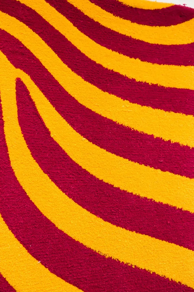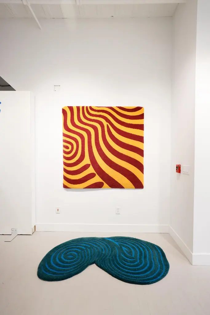 "DALL·E 2023-04-23 11.28.12 24x24", is a piece currently in production as part of Tuft the World's debut TTW Editions collection. This piece is tufted and crafted in the Tuft the World workshop in the United States with 100% New Zealand wool, featuring designs generated from the artificial intelligence program, DALL-E, curated by owner and designer Tim Eads. This piece measures 57"h x 57"w. This rug was designed and crafted by artist Tuft the World. With its abstract, unique design, it is a standout piece of furniture, perfect for adding vibrancy and individuality to your space.Tuft the World was established in 2018 by Tiernan Alexander and Tim Eads, Texas-born artists and business owners living and working in West Philadelphia. The company was founded to provide tufters with the high-quality tools, materials, and instruction they need to make their own tufting projects. Tiernan and Tim’s collective experience as crafters and educators, as well as their uniquely creative approach to art and life, inspire their mission to make the craft of tufting accessible to a broad audience, while staying true to their values of equity and sustainability.