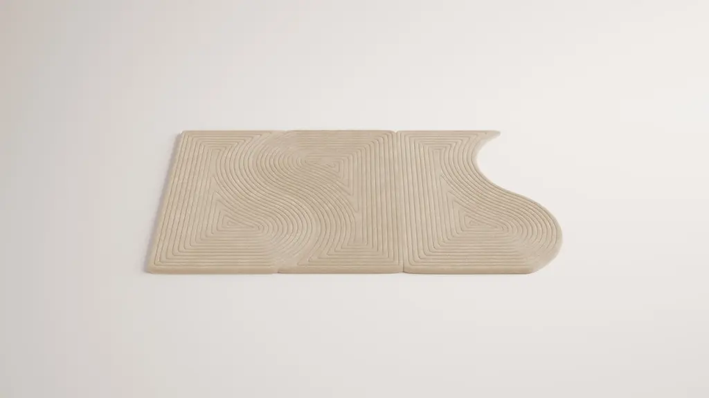 Niwa is a collection of minimal and organic modular rugs. Each module can be combined with others in endless ways to create customizable configurations. This collection is a representation of the sand element within Zen Gardens. The rugs provide fluidity to the space's atmosphere - via the repetition of the internal pattern, they achieve a feeling of movement and fluidity. At the same time, through their external modular shape, they aport change and dynamism to the space.