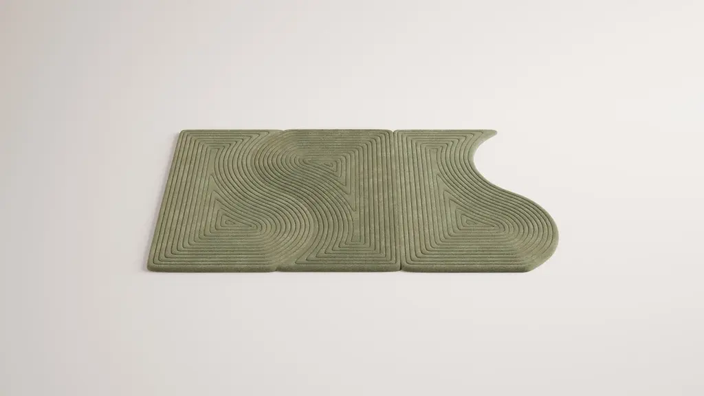 Niwa is a collection of minimal and organic modular rugs. Each module can be combined with others in endless ways to create customizable configurations. This collection is a representation of the sand element within Zen Gardens. The rugs provide fluidity to the space's atmosphere - via the repetition of the internal pattern, they achieve a feeling of movement and fluidity. At the same time, through their external modular shape, they aport change and dynamism to the space.
