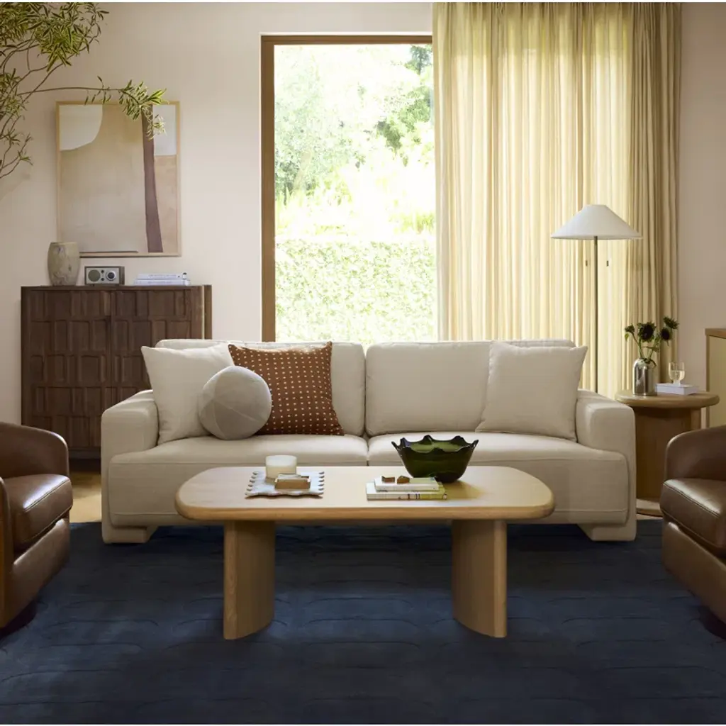 Contour depth. A hand-loomed wool rug with sculpted ovals in a rich navy tone. The high/low pile adds quiet texture and visual interest. Made from 100% wool, it’s soft underfoot yet structured. Offered in multiple sizes, this piece brings understated dimensions to ground your space.
