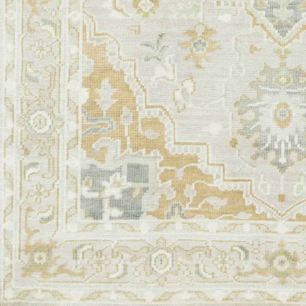 Collection: Convent Colors: Mustard, Sage, Olive, Cream, Light Sage, Tan Construction: Hand Knotted Material: 100% Wool Pile: Low Pile Pile Height: 0.07" Styles: Traditional Made In: India Thickness: 0.24" Fringe Length: 1" Price Range: $$$$$ (Premium)