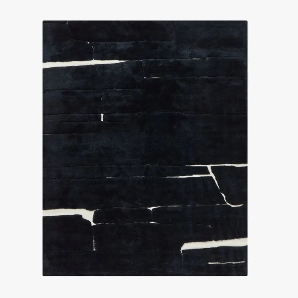 Inspired by the organic striations of natural rock formations, wool area rug is knotted by hand to create beautiful texture. A striking contrast of black and off-white enhances the pattern's depth, while the medium pile height feels comfortable underfoot. Rug is crafted of pure New Zealand wool. CB2 exclusive.How will it look in your room? 12"x12" rug samples are available in stores for a fee refundable upon return of the sample.