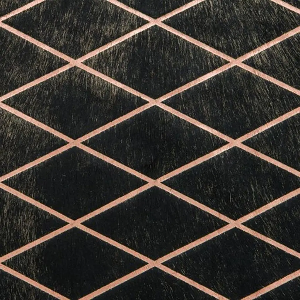 Copper Metallic Diamond Pattern Black Cowhide Rug, Large