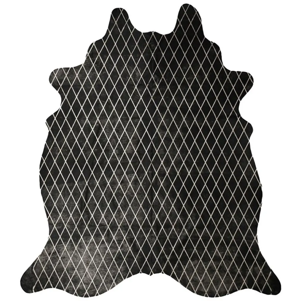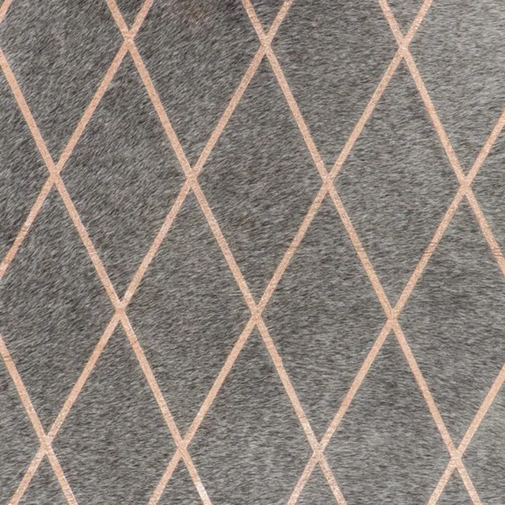 Copper Metallic Diamond Pattern Gray Cowhide Rug, Large