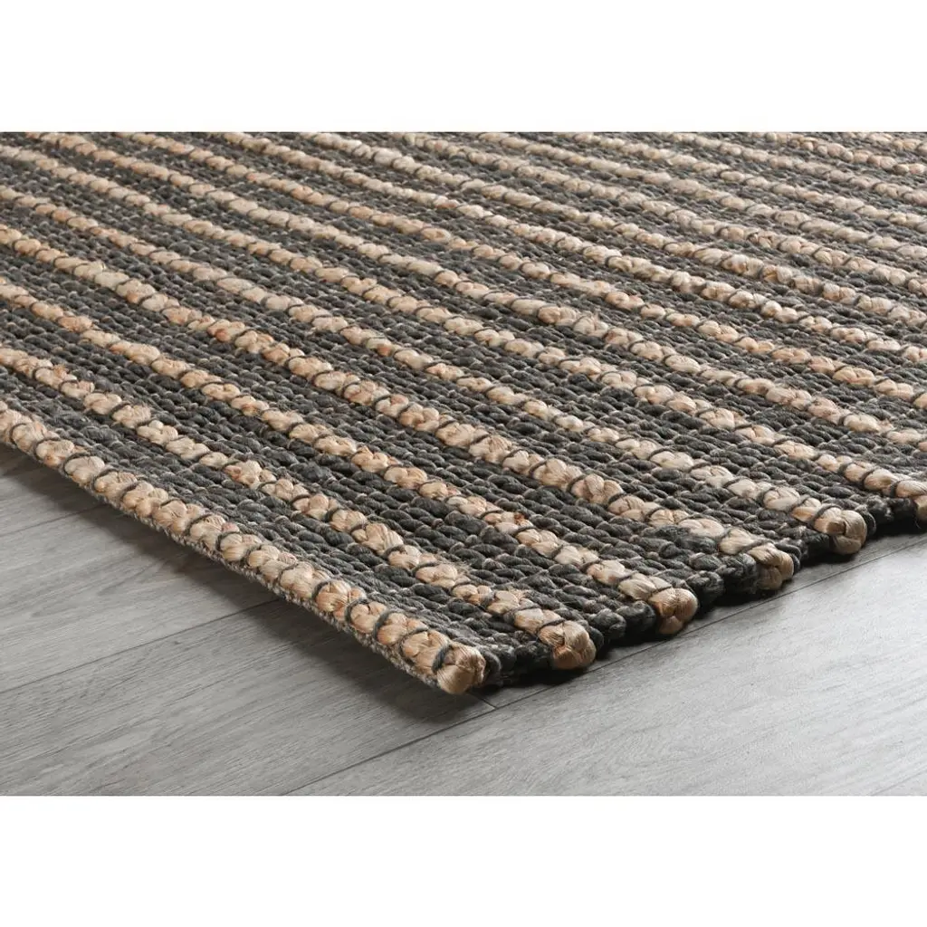 Cora Coastal Beach Black Braided Striped Patterned Jute Rug - 5'x8'