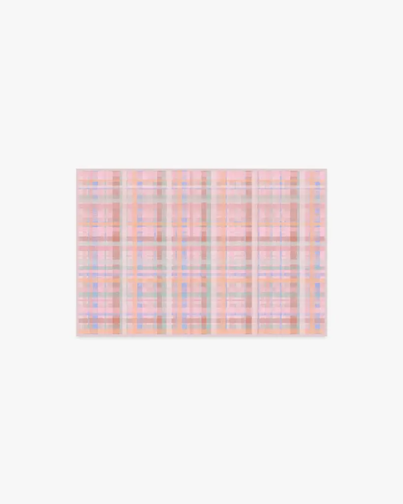 A fun, contemporary take on classic plaid, our Cora Multicolor Pink Rug features painterly layers that gently overlay ribbons of soft hues. The color palette blends soft pinks, cream, dusty red, lavender, and a pop of powder blue. Water-resistant, stain-resistant, and machine-washable. Rug colors may vary slightly according to your device and the lighting in your space.