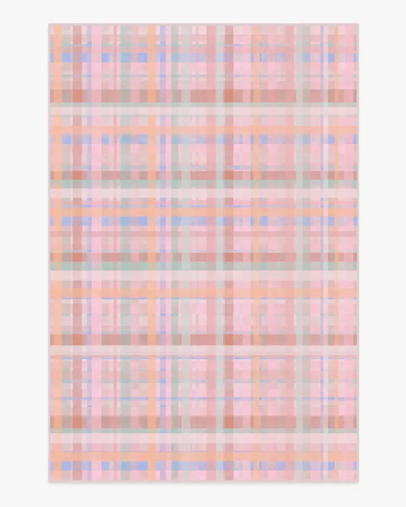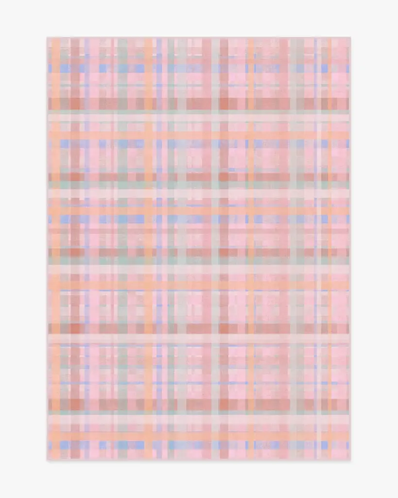 A fun, contemporary take on classic plaid, our Cora Multicolor Pink Rug features painterly layers that gently overlay ribbons of soft hues. The color palette blends soft pinks, cream, dusty red, lavender, and a pop of powder blue. Water-resistant, stain-resistant, and machine-washable. Rug colors may vary slightly according to your device and the lighting in your space.