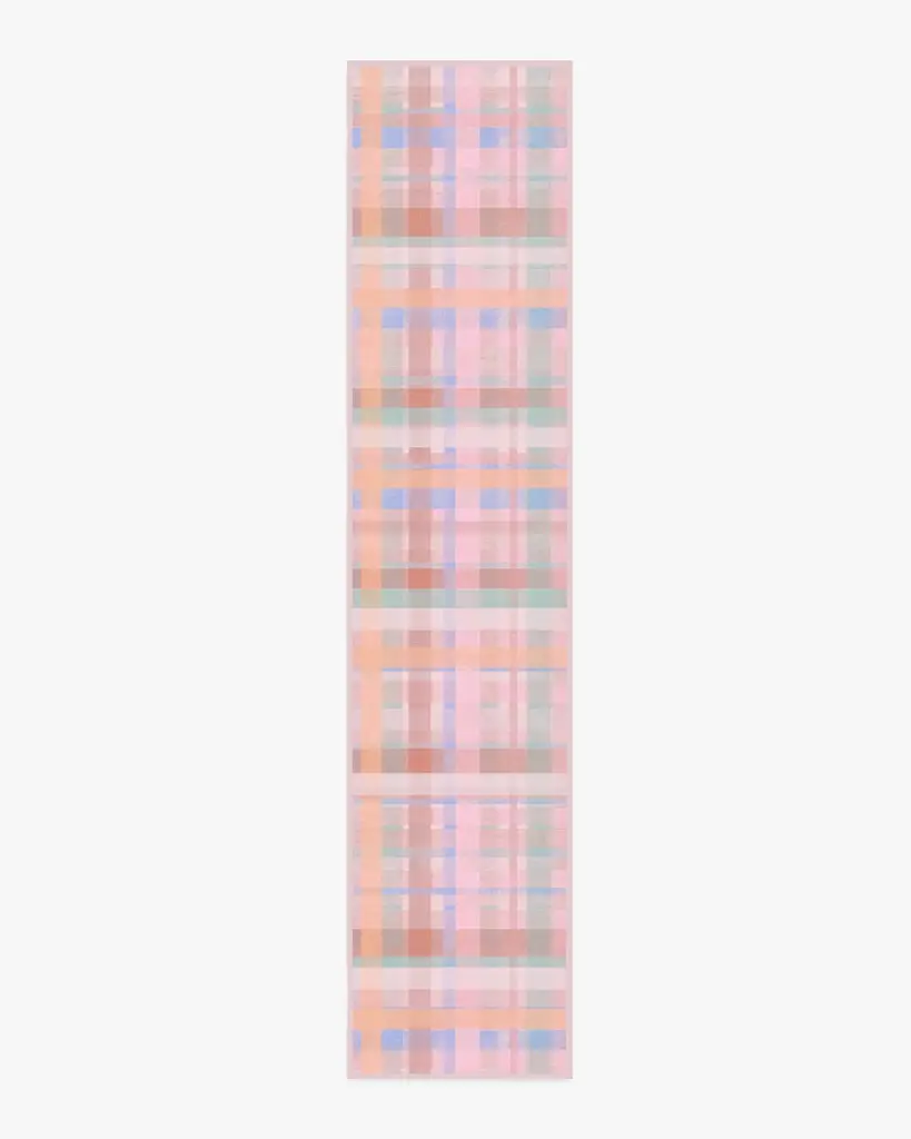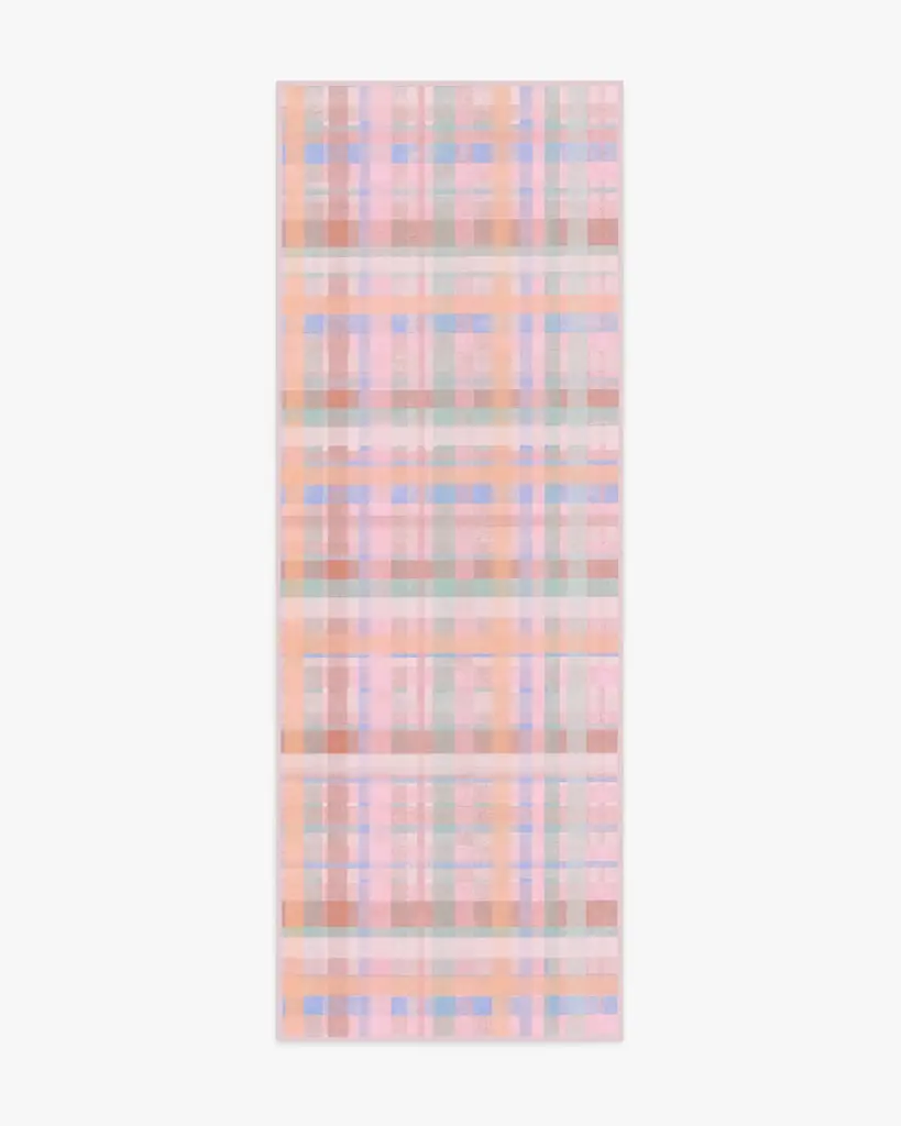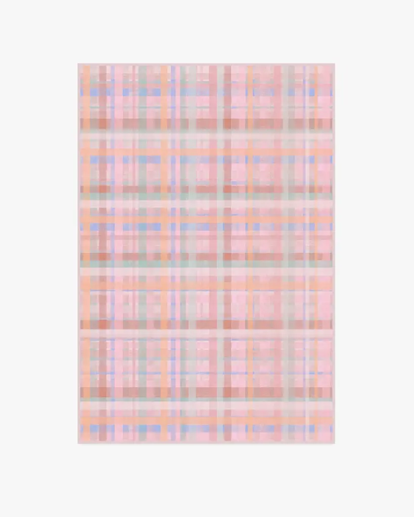 A fun, contemporary take on classic plaid, our Cora Multicolor Pink Rug features painterly layers that gently overlay ribbons of soft hues. The color palette blends soft pinks, cream, dusty red, lavender, and a pop of powder blue. Water-resistant, stain-resistant, and machine-washable. Rug colors may vary slightly according to your device and the lighting in your space.