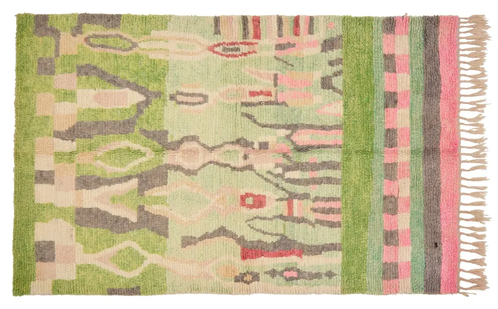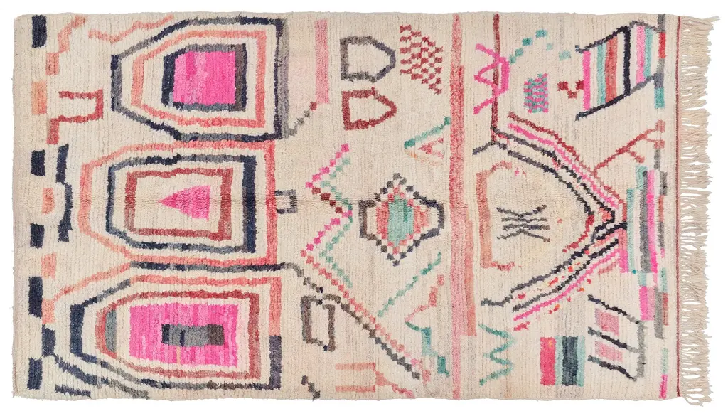 Our Moroccan pieces are each one-of-a-kind. Much of our collection was woven between 30 and 100 years ago, and curated by us. Other rugs in our collection are fresh off the loom and made with traditional techniques. Moroccan rugs don’t come with a key. As with any painting or poem, their motifs have many subjective interpretations. Originally made for personal use, these rugs took months to weave, documenting a shifting tide of events and emotions in the weaver’s life.