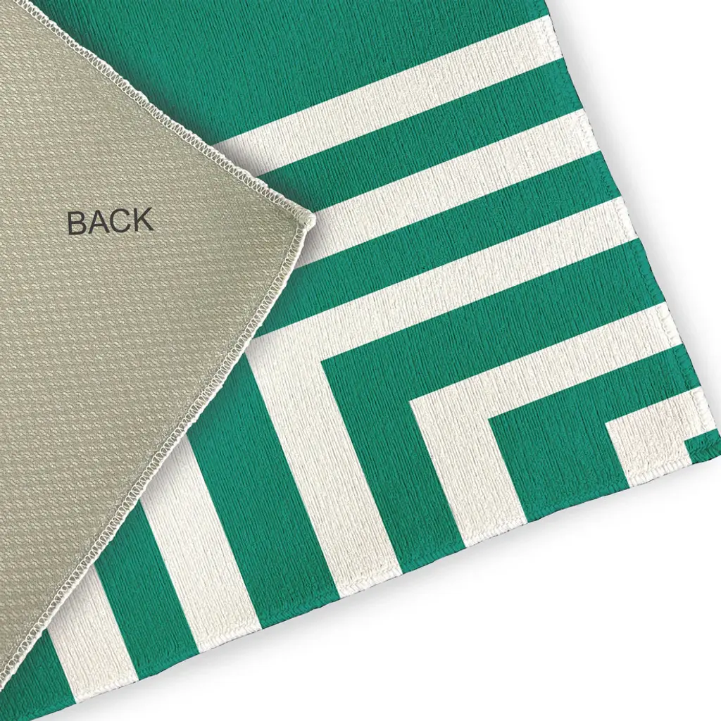 Create a cool coastal environment in your home with a Corner Stripes Indoor/outdoor Rug from the Nantucket Collection. Everyone will delight in the space defining design brought to your porch, patio, kitchen, or bathroom by this area rug. The artistic and colorful design is printed on a soft polyester base with a skid resistant backing, making it a perfect way to add color, flare and personality to any indoor or outdoor space. To clean, use a mild soap and lay flat to dry.