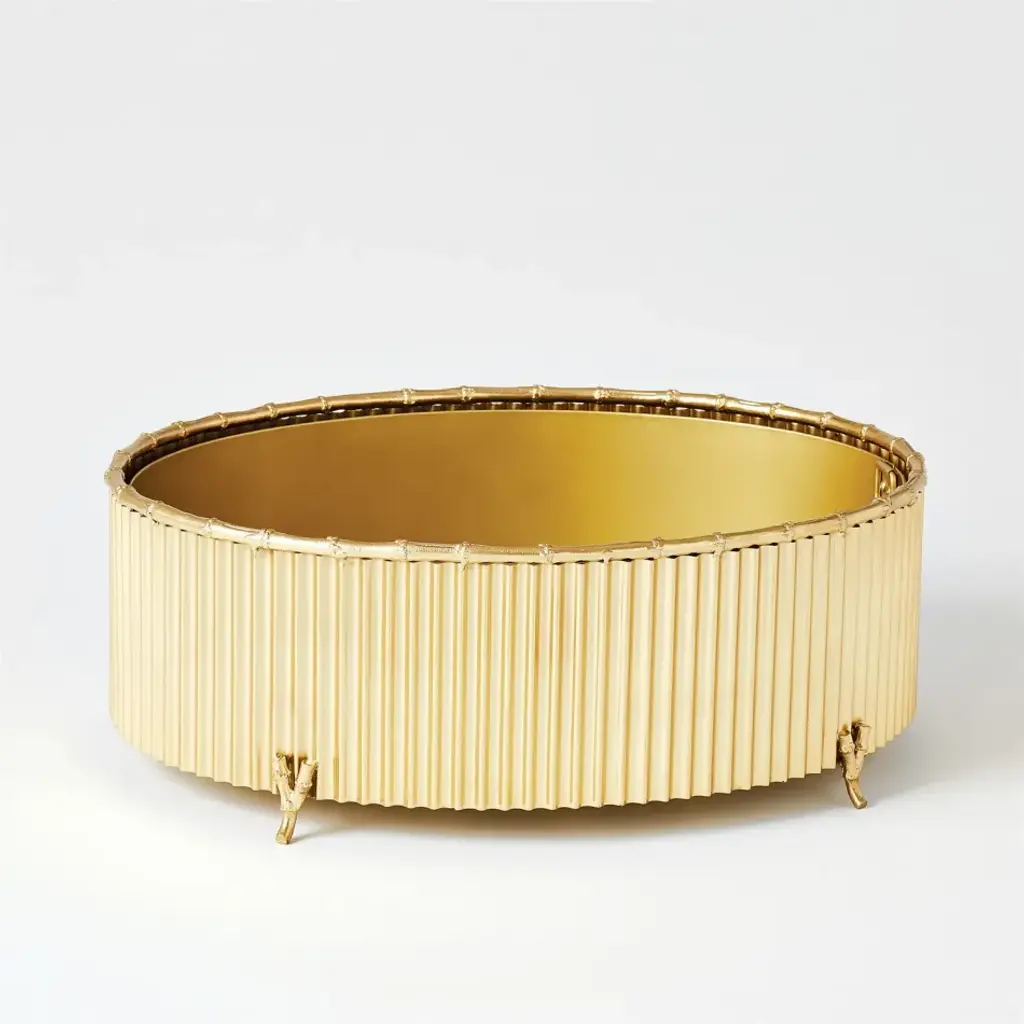 These handmade solid brass cachepots come with removable inner liners. The small fits an 8 inch orchid perfectly. The medium fits 3-4 6 inch orchids, and the large is big enough for the grandest of arrangements. The soldering process is extremely labor intensive to achieve the delicate and perfect flutes that surround these pieces From a fashion forward perspective, Global Views offers accessories, furniture, statement lighting, and an assortment of rugs and mirrors to add beauty and joy to your home.