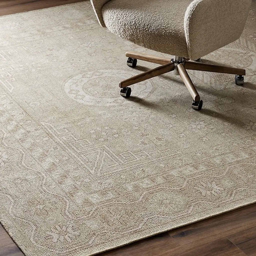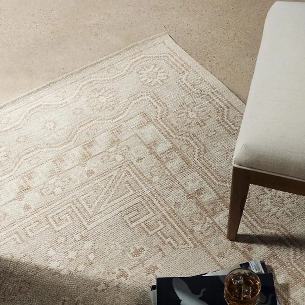 The Cortona Area Rug is presented by Four Hands. Paying homage to the rich traditions of the ancient city of Khotan, it has been crafted from a luxurious blend of soft wool and cotton. The neutral earth tones elegantly complement the traditional pattern, creating a warm and inviting atmosphere. Meticulously hand-knotted by master weavers from India, this rug exemplifies their time-tested expertise and attention to detail.