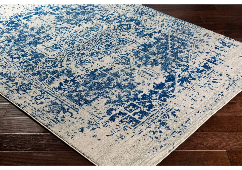 Updating a traditional design with a vivid blue field and dramatic abrash, this rug is made using durable polypropylene, a fade-resistant, easy-to-clean material that can stand up to the everyday wear and tear of areas that see heavy foot traffic.