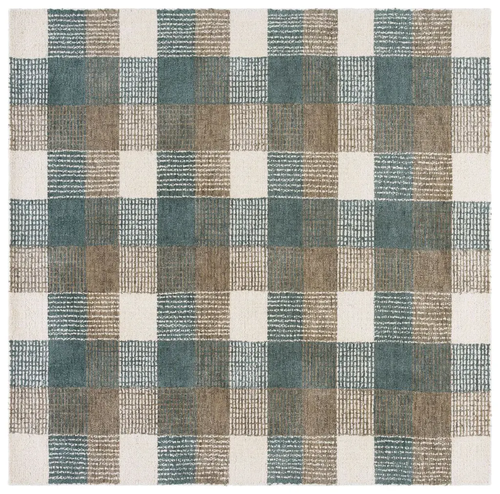 Introducing our exquisite Hand Tufted Wool-Cotton Blend Area Rug, a perfect blend of form and function designed to elevate any room in your home. Sized at a versatile 4' x 6' and featuring a cozy 3/8" pile height, this small rectangular rug offers comfort underfoot and a stylish impact in any setting. Crafted with meticulous attention to detail, this rug boasts a harmonious ivory and brown color palette, seamlessly blending into both contemporary and traditional decors. The sophisticated pattern that adorns this piece, inspired by the image provided, showcases an elegant play of grids and textures, promising to add visual interest and a touch of modernity to your space. Each rug is meticulously hand tufted in India by skilled artisans, using a durable blend of 80% wool and 20% cotton. This combination ensures the rug not only feels luxurious but also stands up to the test of time. Wool provides warmth, resilience, and a soft plush feel, while cotton adds strength and easy maintenance. Whether you're looking to revitalize your living room, bedroom, or study, this Hand Tufted Wool-Cotton blend area rug is an investment in comfort and style. Don't miss out on the opportunity to bring this timeless piece, with its understated elegance and impeccable craftsmanship, into your home today.