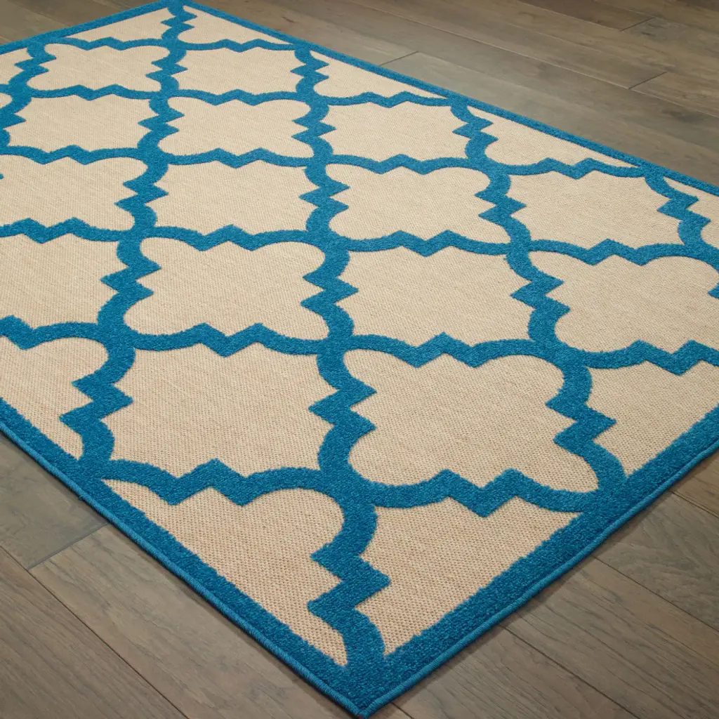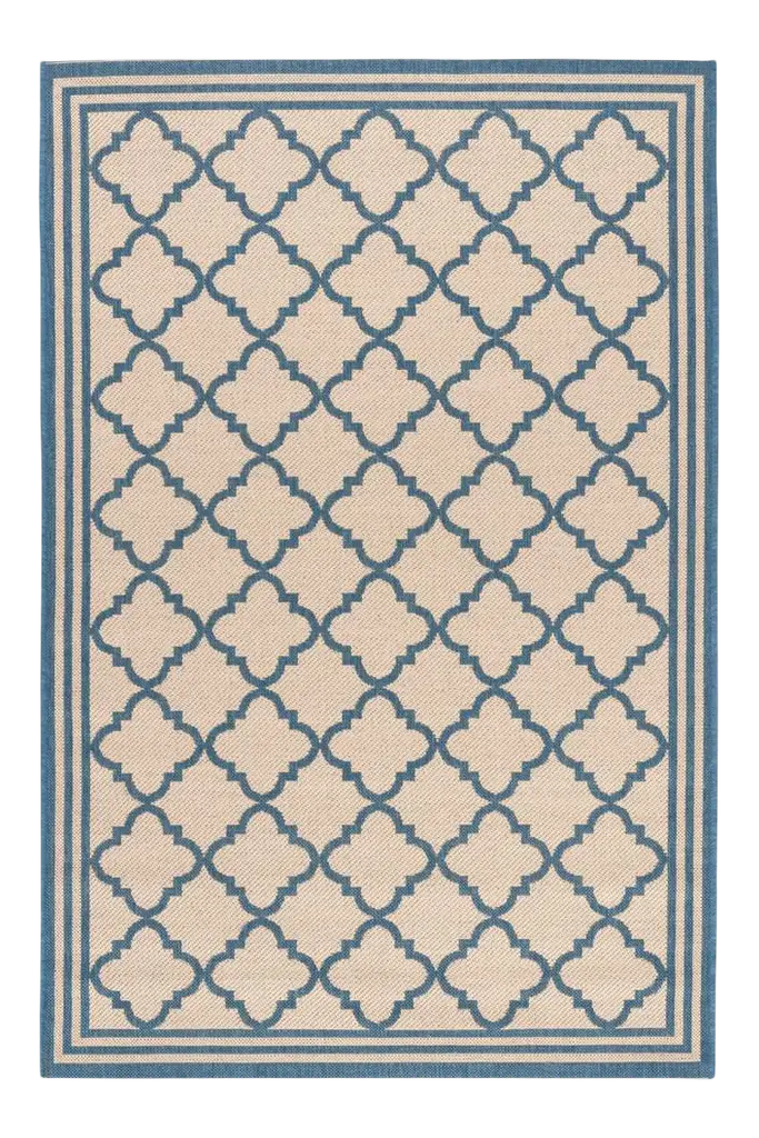 Costa Quatrafoil Lattice Sand And Blue Indoor/outdoor Area Rug, 3'10"x5'5"
