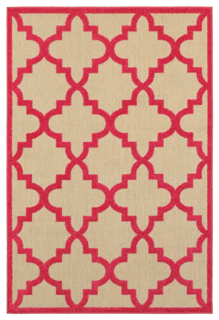 Costa Quatrafoil Lattice Sand And Pink Indoor/outdoor Area Rug, 3'10"x5'5"