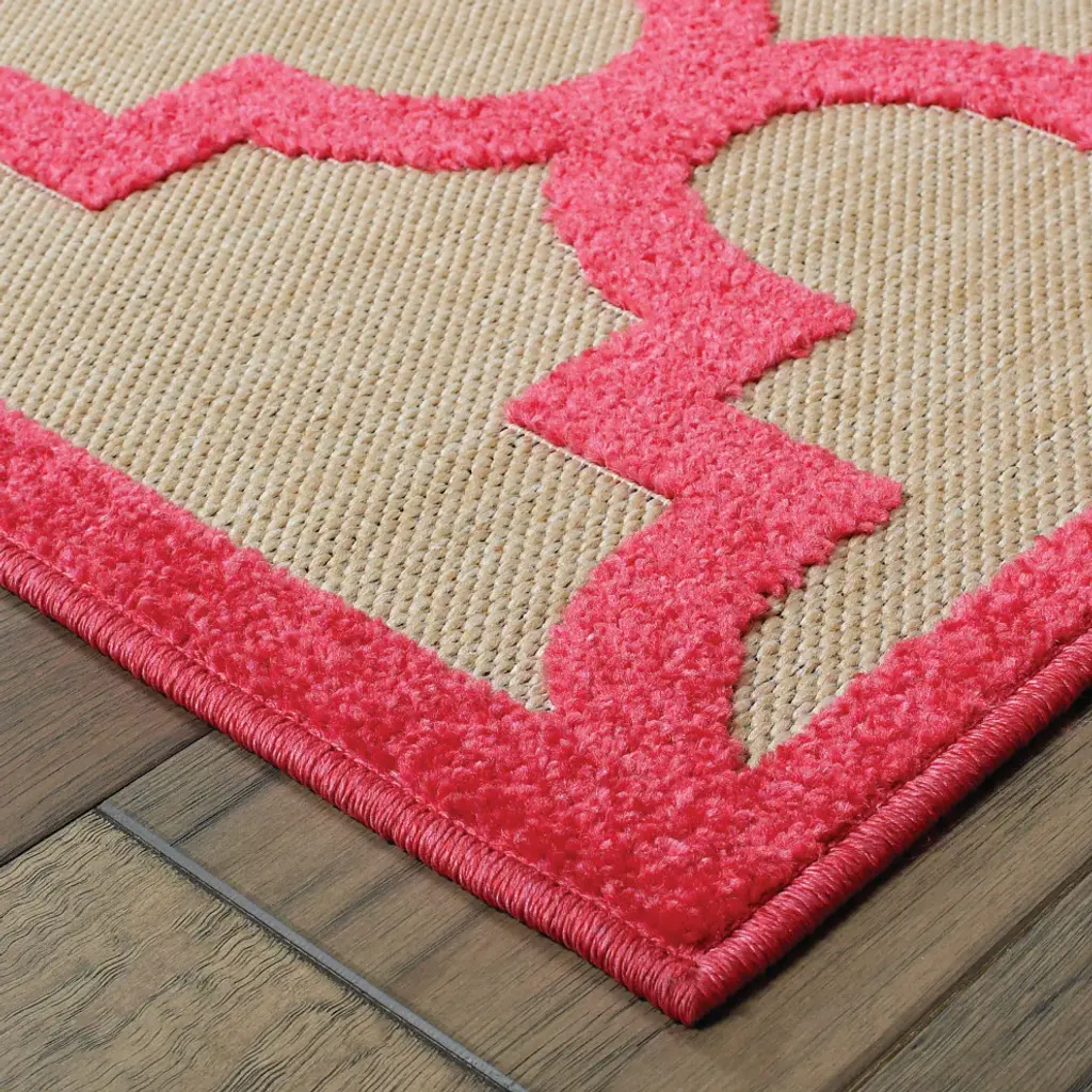 Costa Quatrafoil Lattice Sand And Pink Indoor/outdoor Area Rug, 6'7"x9'6"