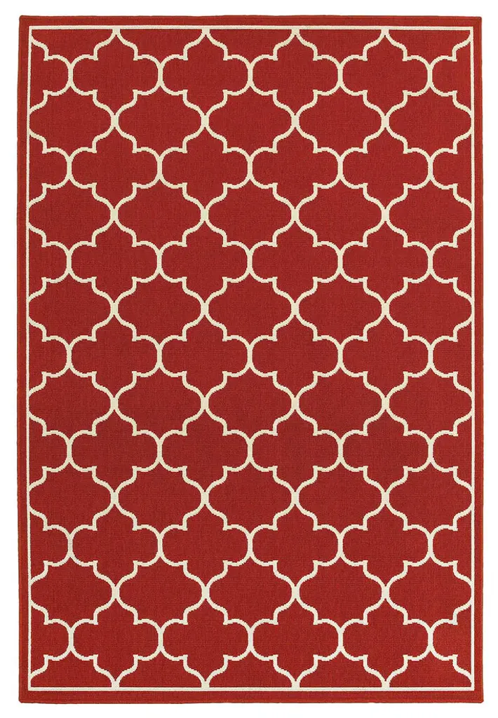 Costa Quatrafoil Lattice Sand And Red Indoor/outdoor Area Rug, 9'10"x12'10"