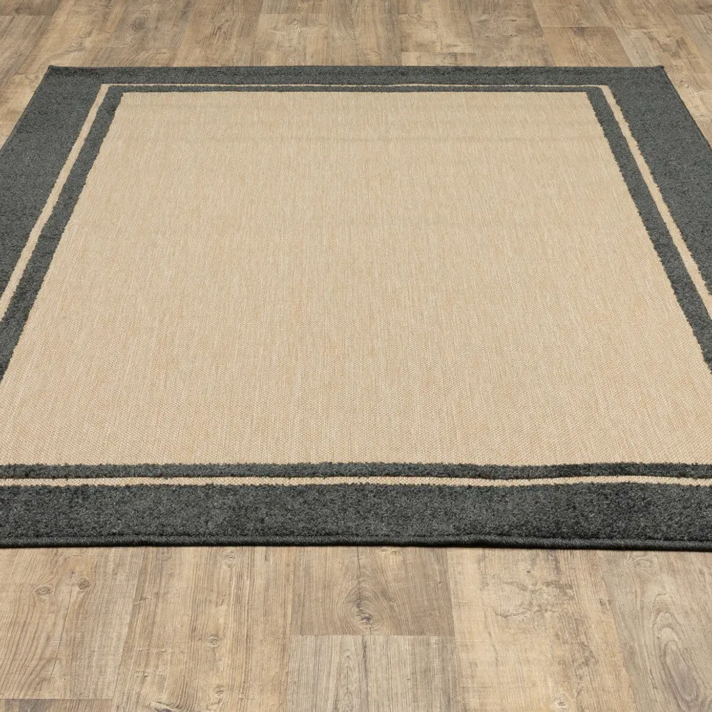 Costa Simply Borders Sand And Charcoal Indoor/outdoor Area Rug, 9'10"x12'10"
