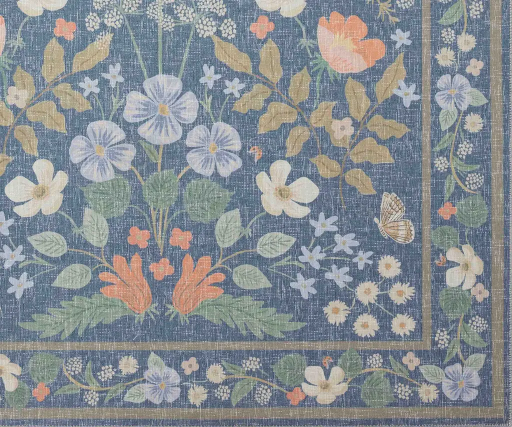 Our Willow rug features bright and cheerful blooms set in a motif inspired by traditional rug designs, with a flowering vine creating a border offset by a solid stripe. This printed rug is powerloomed of 100% polyester pile and designed to withstand foot traffic. Part of our Rifle Paper Co. × Loloi collection. The layout and scale of our rugs is adjusted to accommodate each available size, and may be different than what is pictured here. Images of each size are available by hovering over the desired size on our desktop site.