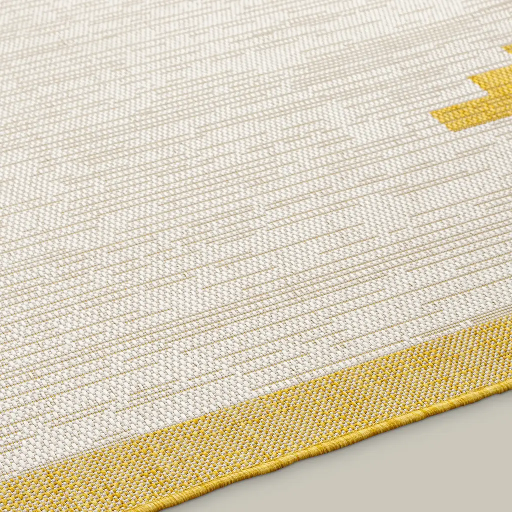 Globally inspired and designed for real life, the Cottier Outdoor Rug brings modern sophistication to alfresco living. With its graphic patterning and artisanal feel, this machine-woven rug is crafted in Turkey from fade-and weather-resistant polypropylene -perfect for high-traffic areas, patios, and sunrooms alike. Its flatwoven, no-pile construction offers effortless maintenance and enduring style. Simply hose off and hang to dry for easy care. Pair with a rug pad for added comfort and stability. Cottier is where performance meets the well-traveled aesthetic of Lemieux et Cie—crafted to ground your space with intention.