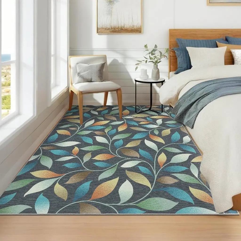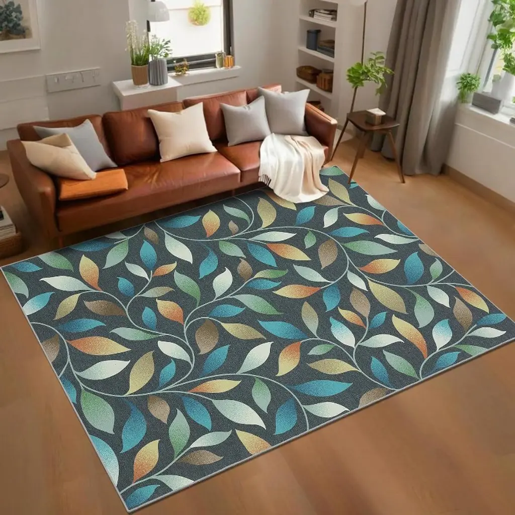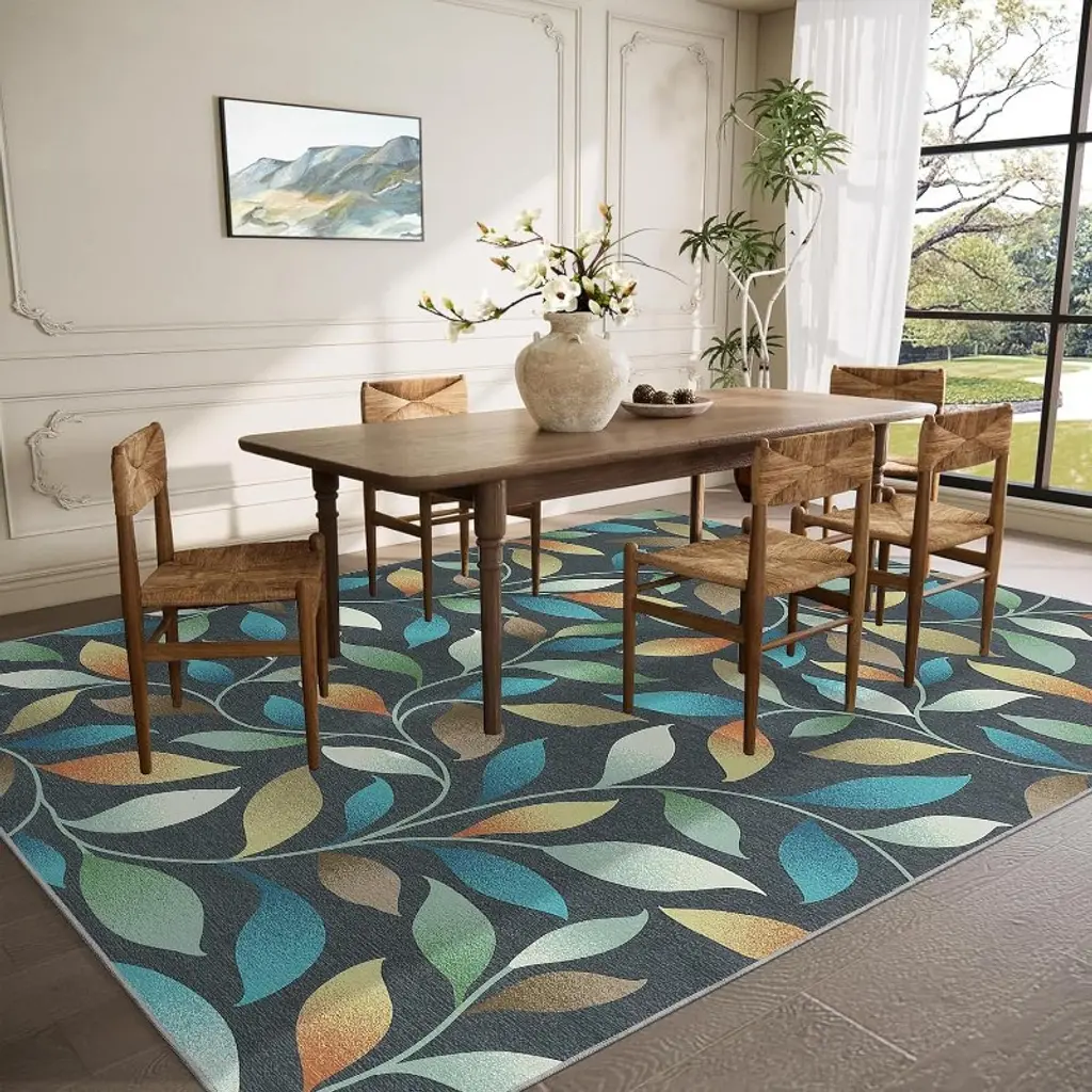 Refresh your space with this nature-inspired rug that combines beauty and practicality. You'll love how the modern leaf pattern brings the outdoors in, while the stain-resistant fabric and non-slip backing keep it looking great through daily life. Perfect for high-traffic areas, it easily washes clean and fits under furniture without bunching - ideal for homes with kids, pets, or busy schedules.