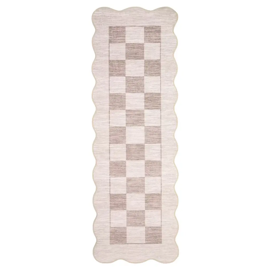 Coucheta Washable Scalloped Rug, Modern Checkered Rug With Non Slip Tpr Backing, Scalloped Checkered Carpet, Soft Washable Non Shedding Carpets
