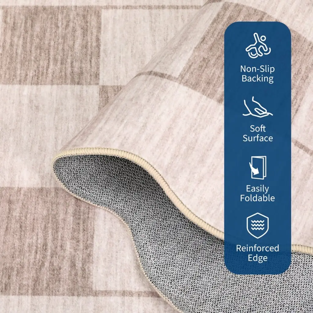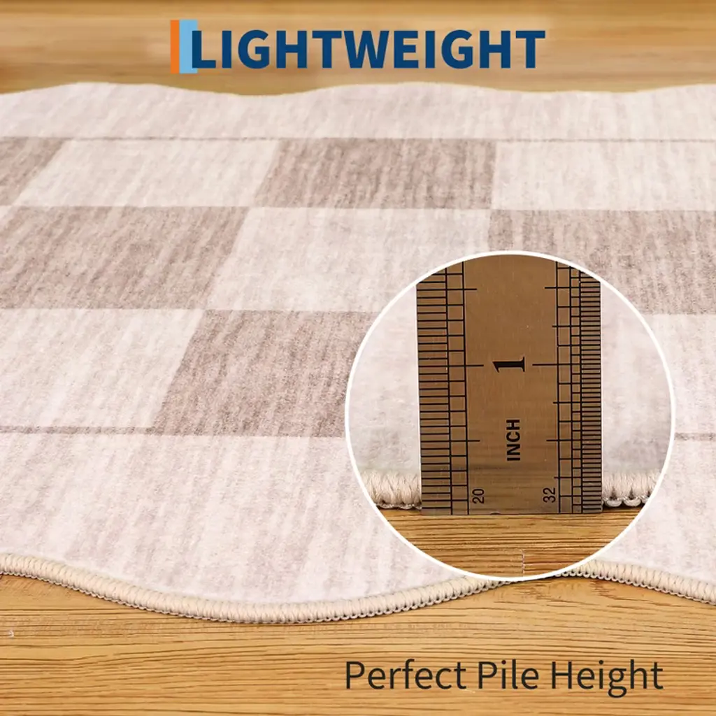 Washable Scalloped Rug, Modern Checkered Rug with Non Slip TPR Backing, Scalloped Checkered Carpet, Soft Washable Non Shedding Carpets