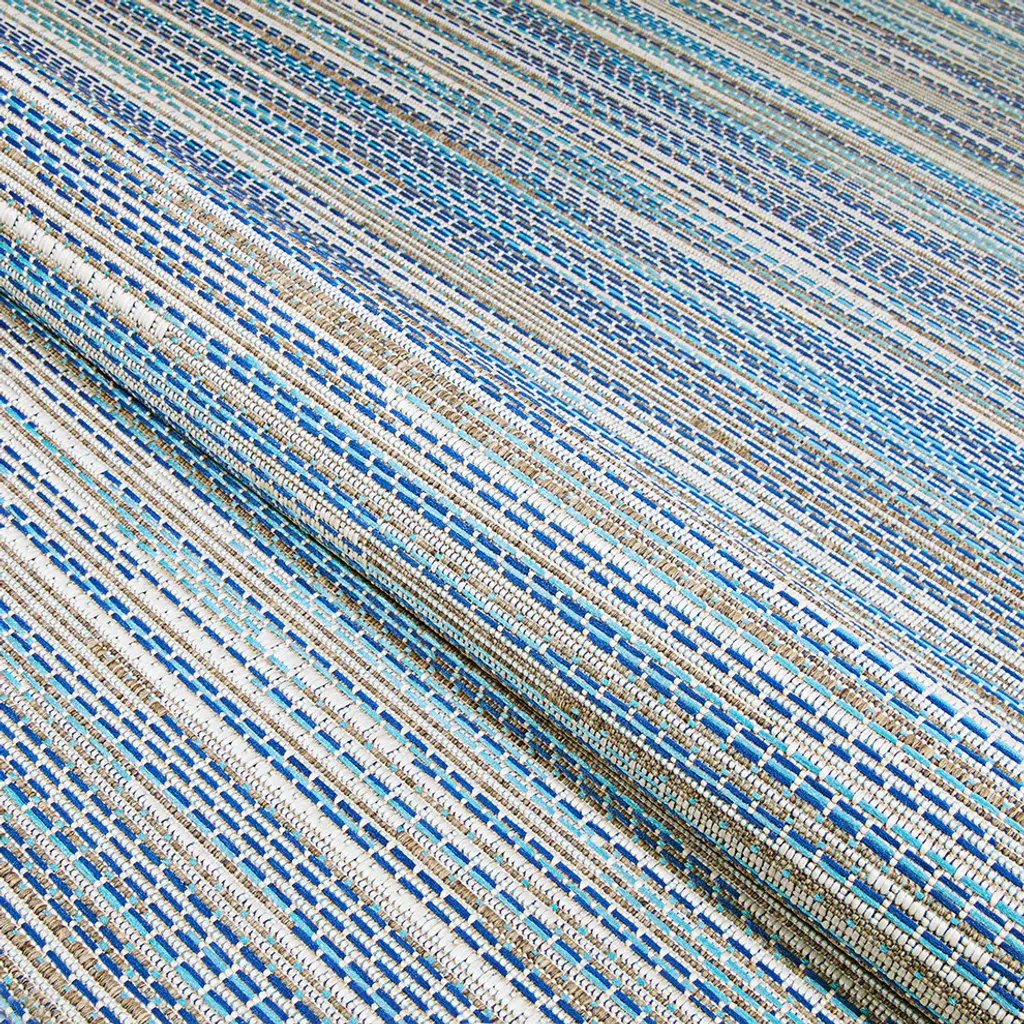 Relax in the comfort of your home with the effortlessly modern Monaco Collection. The varying motifs, ranging from graphic stripes to geometric patterns, are sure to fit in seamlessly in both your outdoor spaces and indoor rooms. These multi-purpose area rugs are constructed in a unique structured flatweave, boasting a smooth surface that is perfect for outdoor or indoor use. Woven using 100% fiber-enhanced Courtron polypropylene, each of the subtle patterns offer a highly durable pile with little upkeep required. Designed specifically to withstand outdoor elements, Monaco is UV stabilized to ensure each area rug in the collection retains its color due to sun exposure and other weather conditions, as well as mold and mildew resistant. The neutral color scheme found in Monaco, including cool blues, muted greens, soft Grays and sandy beiges, is sure to transport you to your very own in-home retreat.