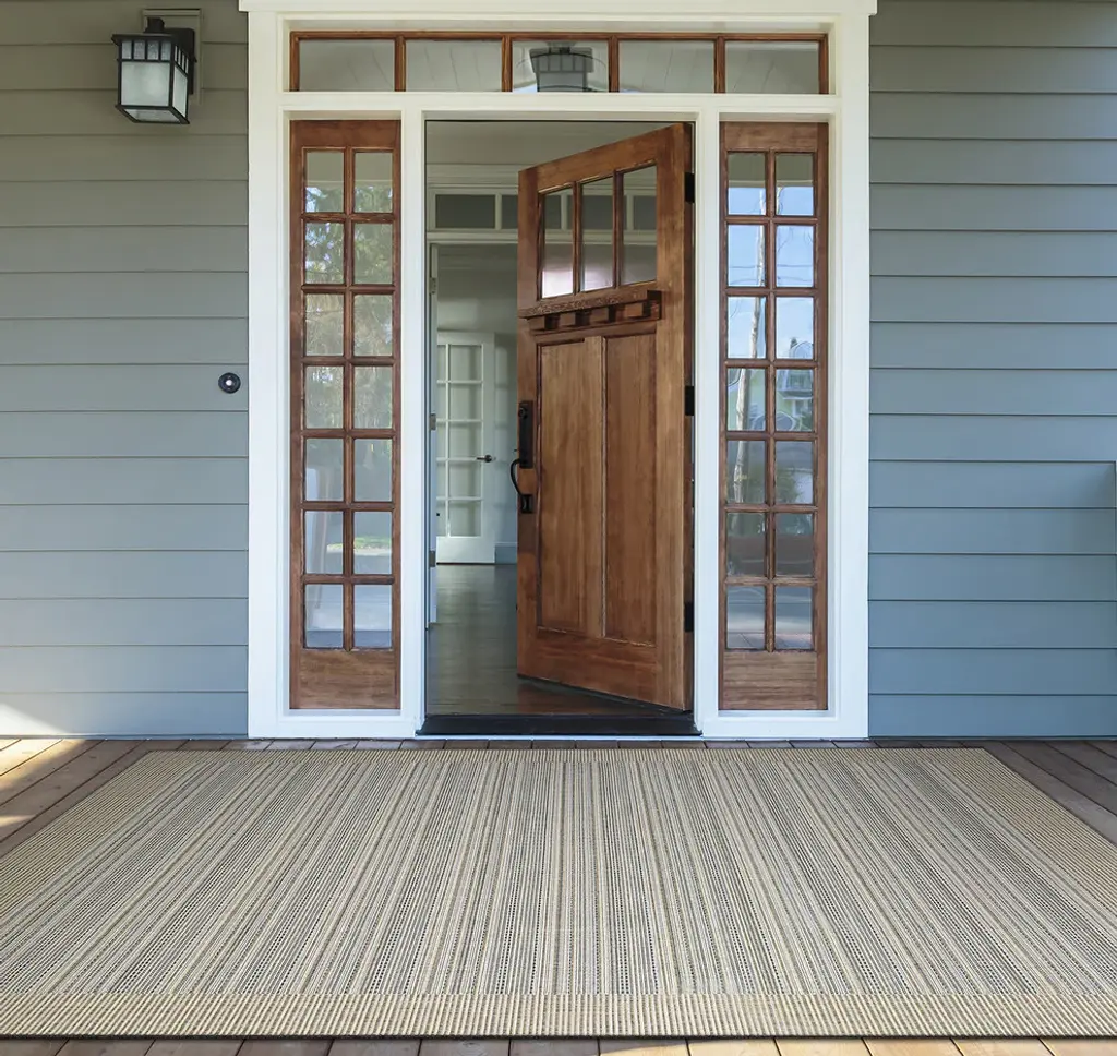Relax in the comfort of your home with the effortlessly modern Monaco Collection. The varying motifs, ranging from graphic stripes to geometric patterns, are sure to fit in seamlessly in both your outdoor spaces and indoor rooms. These multi-purpose area rugs are constructed in a unique structured flatweave, boasting a smooth surface that is perfect for outdoor or indoor use. Woven using 100% fiber-enhanced Courtron polypropylene, each of the subtle patterns offer a highly durable pile with little upkeep required. Designed specifically to withstand outdoor elements, Monaco is UV stabilized to ensure each area rug in the collection retains its color due to sun exposure and other weather conditions, as well as mold and mildew resistant. The neutral color scheme found in Monaco, including cool blues, muted greens, soft Grays and sandy beiges, is sure to transport you to your very own in-home retreat.