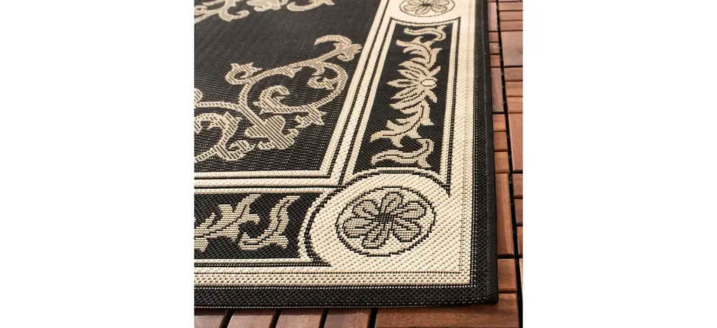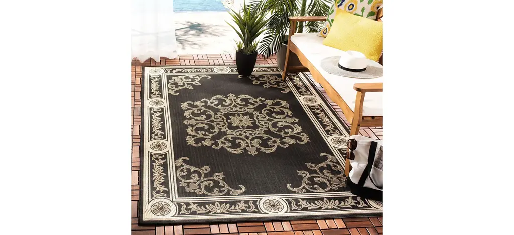 The Courtyard Bordered Indoor/Outdoor Area Rug brings interior design style to busy living spaces, inside and out. Courtyard is beautifully styled with patterns from classic to contemporary, all in colors, shapes, and sizes to fit any area. Courtyard area rugs are made with enhanced polypropylene in a special sisal weave that achieves intricate designs that are easy to maintain - simply clean with a garden hose.
