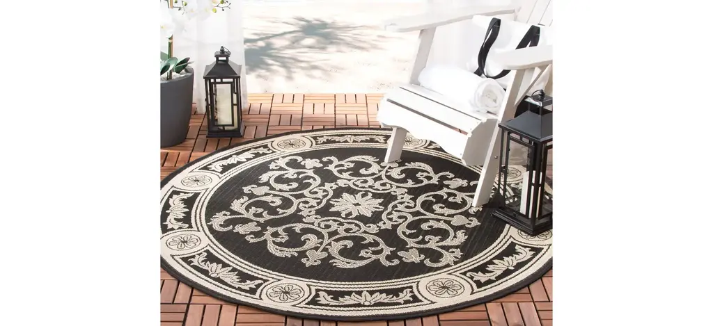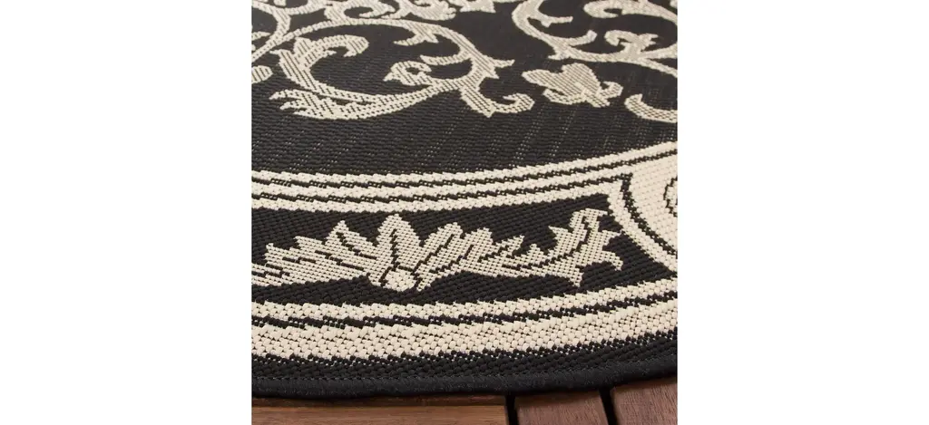 The Courtyard Bordered Indoor/Outdoor Area Rug Round brings interior design style to busy living spaces, inside and out. Courtyard is beautifully styled with patterns from classic to contemporary, all in colors, shapes, and sizes to fit any area. Courtyard area rugs are made with enhanced polypropylene in a special sisal weave that achieves intricate designs that are easy to maintain - simply clean with a garden hose.