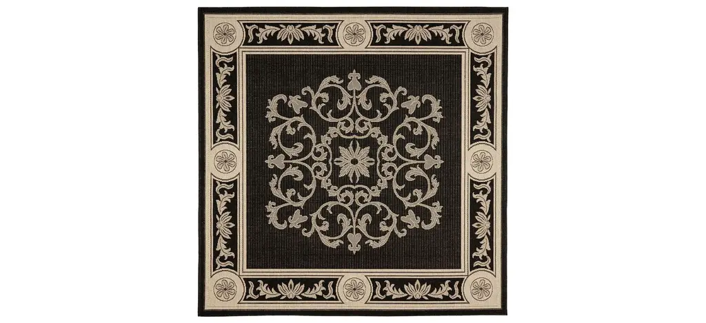 The Courtyard Bordered Indoor/Outdoor Area Rug Round brings interior design style to busy living spaces, inside and out. Courtyard is beautifully styled with patterns from classic to contemporary, all in colors, shapes, and sizes to fit any area. Courtyard area rugs are made with enhanced polypropylene in a special sisal weave that achieves intricate designs that are easy to maintain - simply clean with a garden hose.