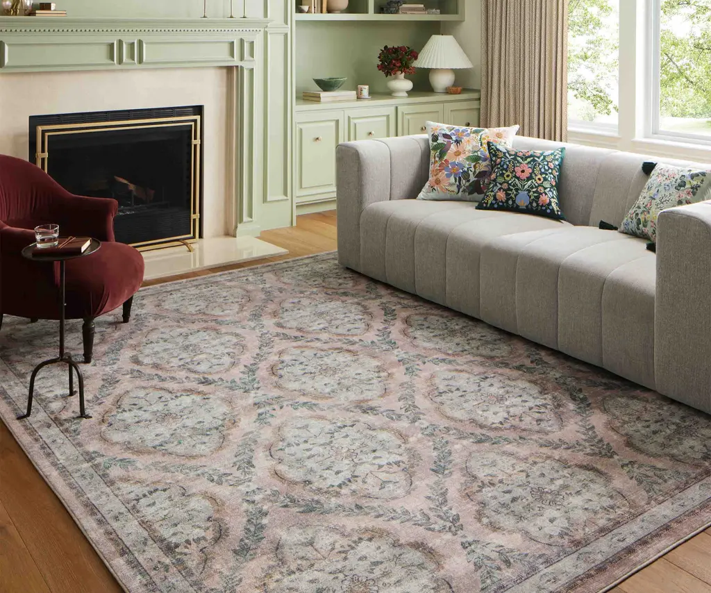 An offset grid of floral medallions creates the illusion of a curved ogee pattern on our Courtyard Chateau rug, available in both deep colorways and elegant pastels. The Courtyard collection was made with Loloi's CloudPile construction, an incredibly soft fabrication that combines the best of affordable printed rugs with the plushness of a pile. Part of our Rifle Paper Co. × Loloi collaboration. The layout and scale of our rugs is adjusted to accommodate each available size, and may be different than what is pictured here. Images of each size are available by hovering over the desired size on our desktop site.