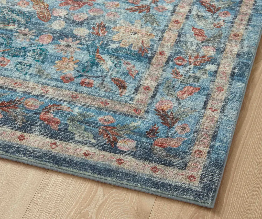 The floral design of the Eve rug almost creates a compass rose, with statement blooms facing in the four cardinal directions, surrounded by a detailed border. The Courtyard collection was made with Loloi's CloudPile construction, an incredibly soft fabrication that combines the best of affordable printed rugs with the plushness of a pile. Part of our Rifle Paper Co. × Loloi collaboration. The layout and scale of our rugs is adjusted to accommodate each available size, and may be different than what is pictured here. Images of each size are available by hovering over the desired size on our desktop site.